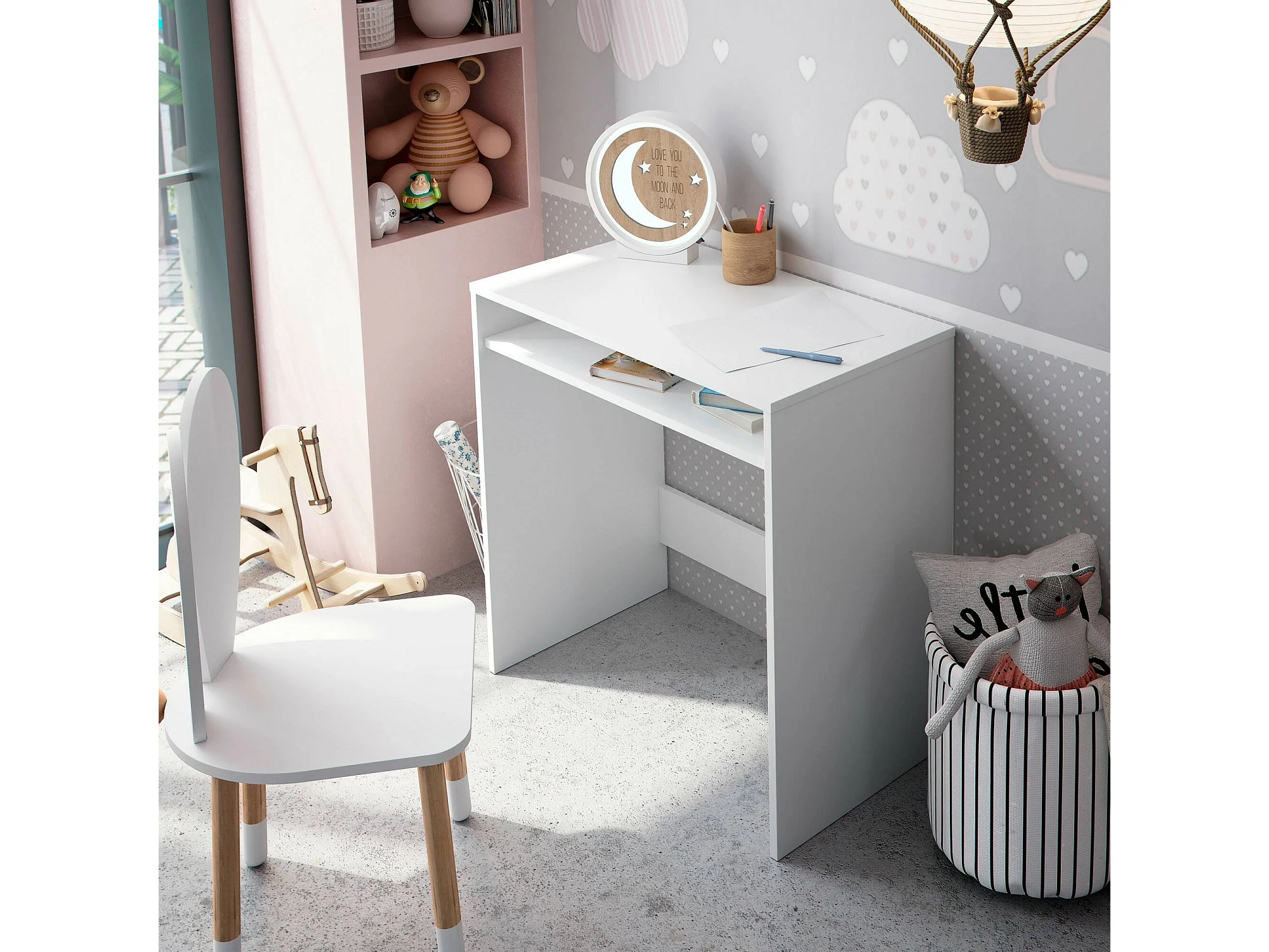 Dcapezz Desk, Bureau avec étagère, Table d'étude pour PC pour bureau ou chambre, Table d'étude, 90x54h79 cm, Blanc