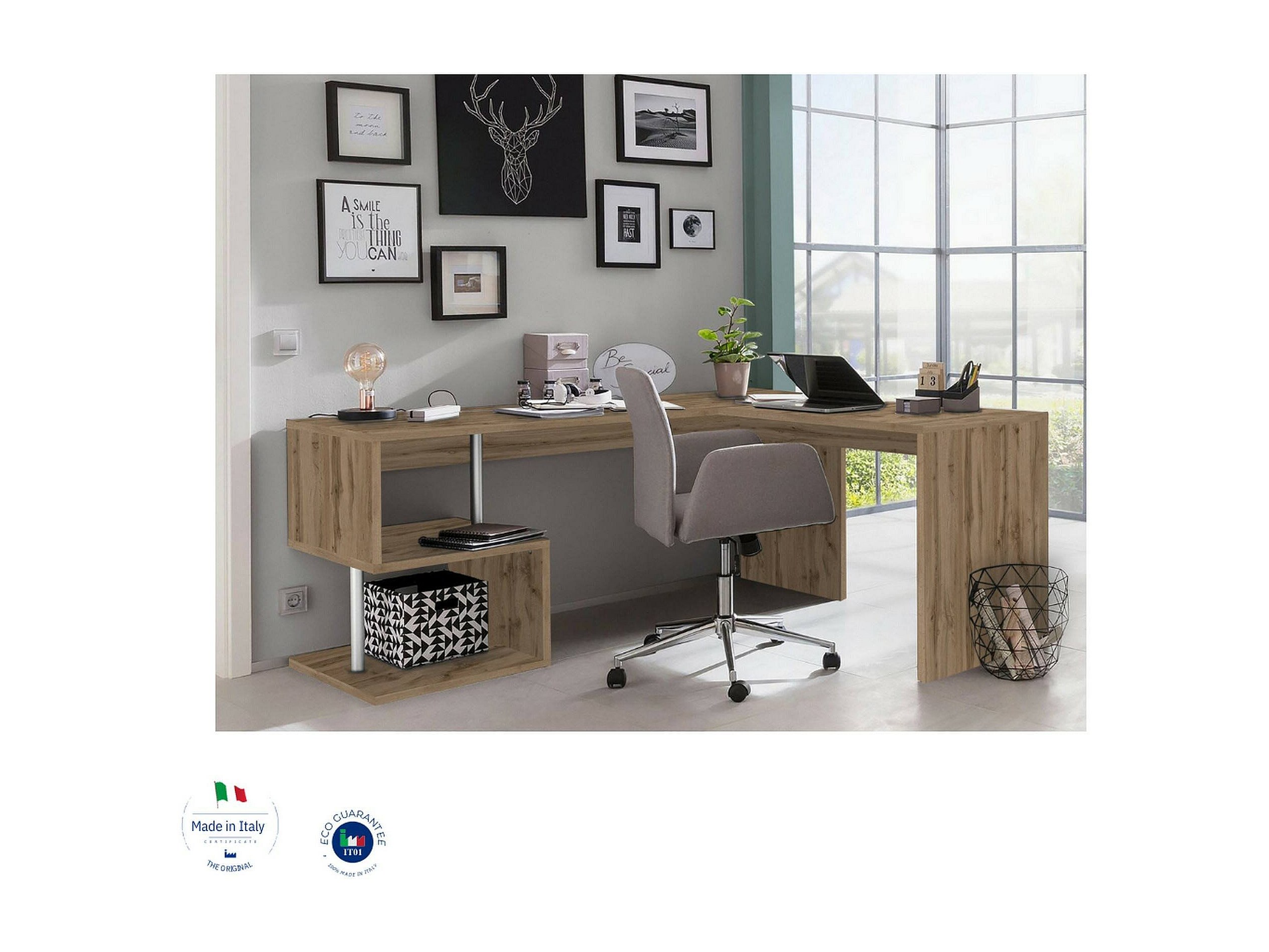 Bureau Dmassaro, Bureau d'angle PC, Table de bureau polyvalente, Bureau gain de place multi-positions, 100% Made in Italy, 160x60h78 cm, Chêne