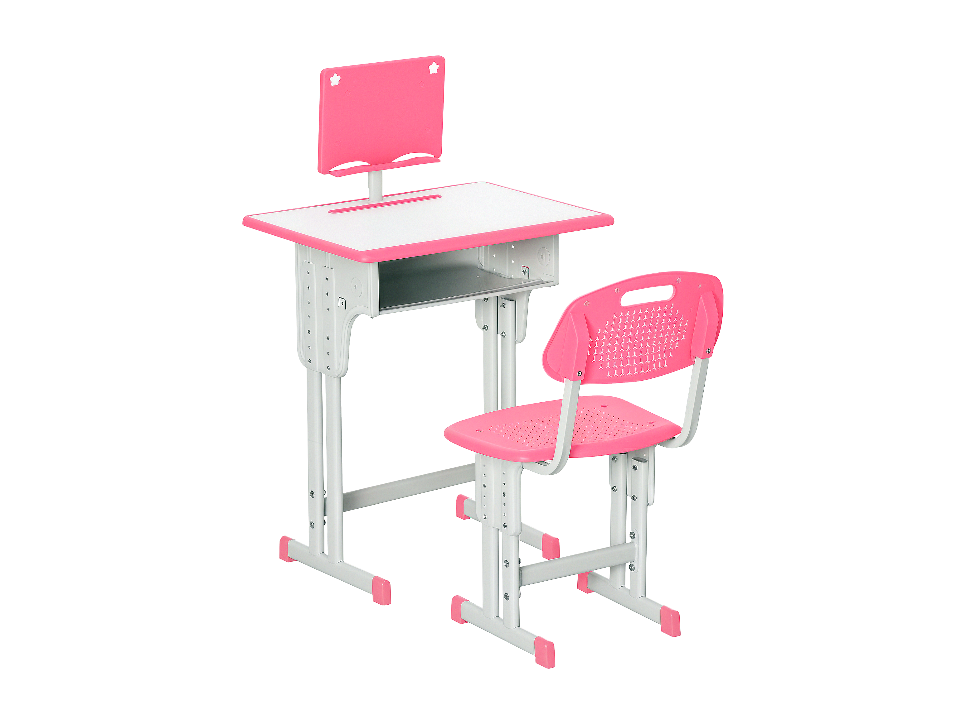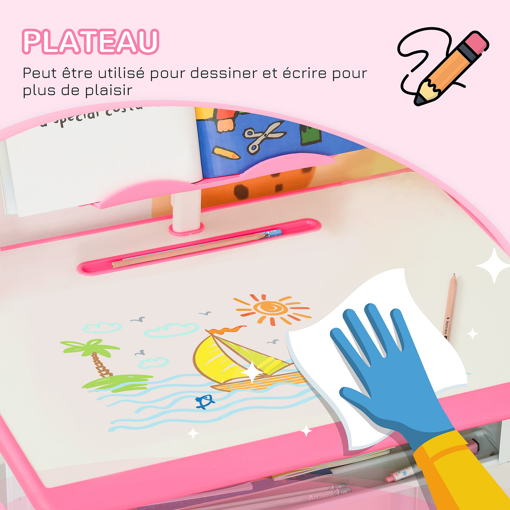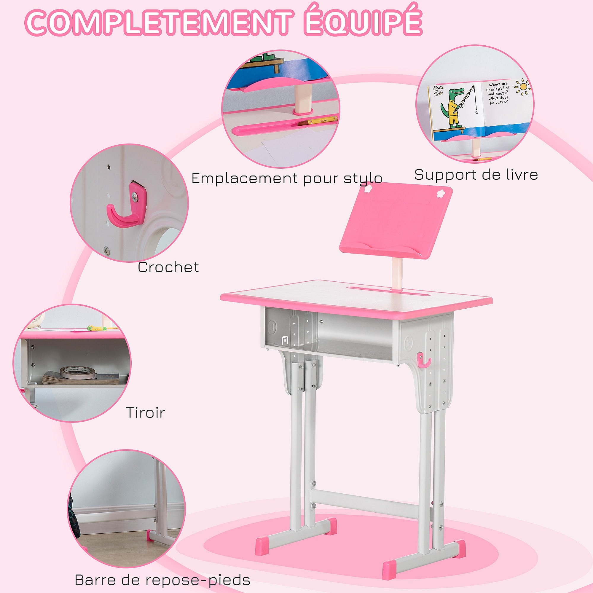 Bureau enfant avec chaise - ensemble bureau et chaise réglable - support de lecture, case - rose blanc