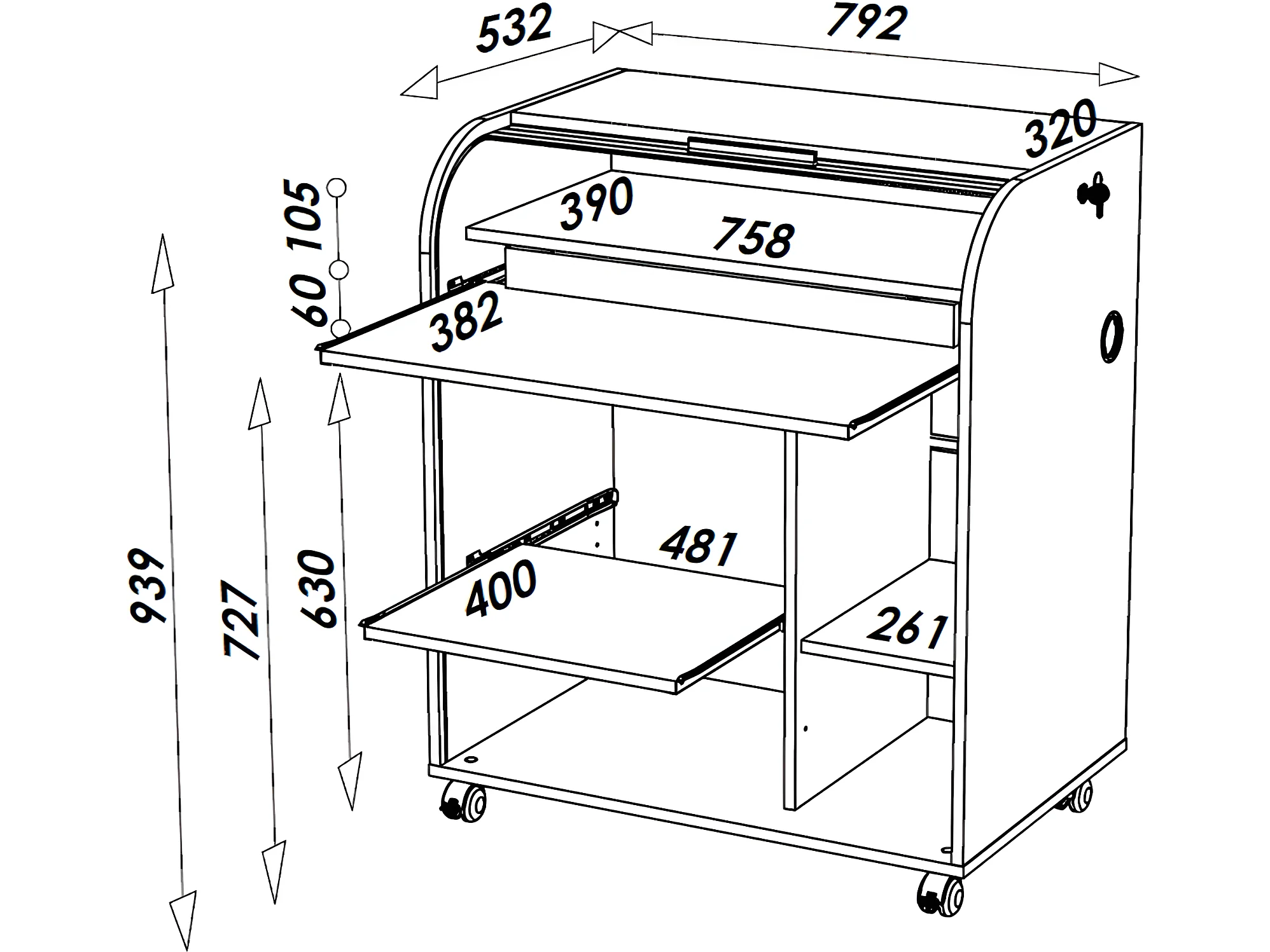 Bureau Informatique Chêne 1 Rideau - Coloris: Blanc