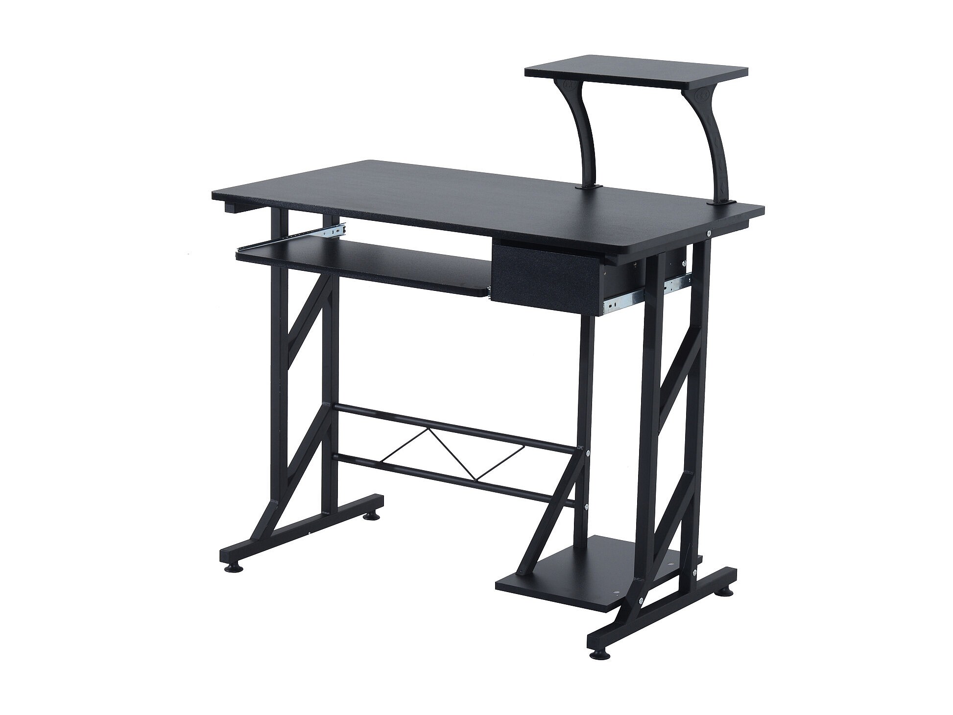 Bureau informatique compact avec étagères de rangement, table d'ordinateur en MDF, design multifonction, 90 x 50 x 100 cm, noir