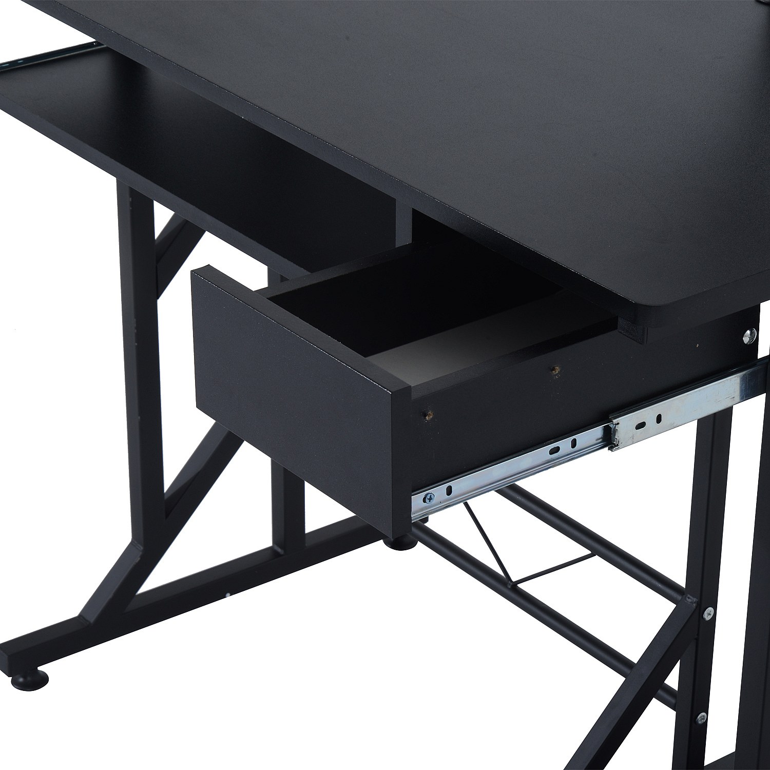 Bureau d'Ordinateur avec Tiroir, Bureau Informatique en Forme de X avec Support d'Écran, Repose-Pieds, Table de Bureau pour Étudier, Jouer, Travailler (Noir)