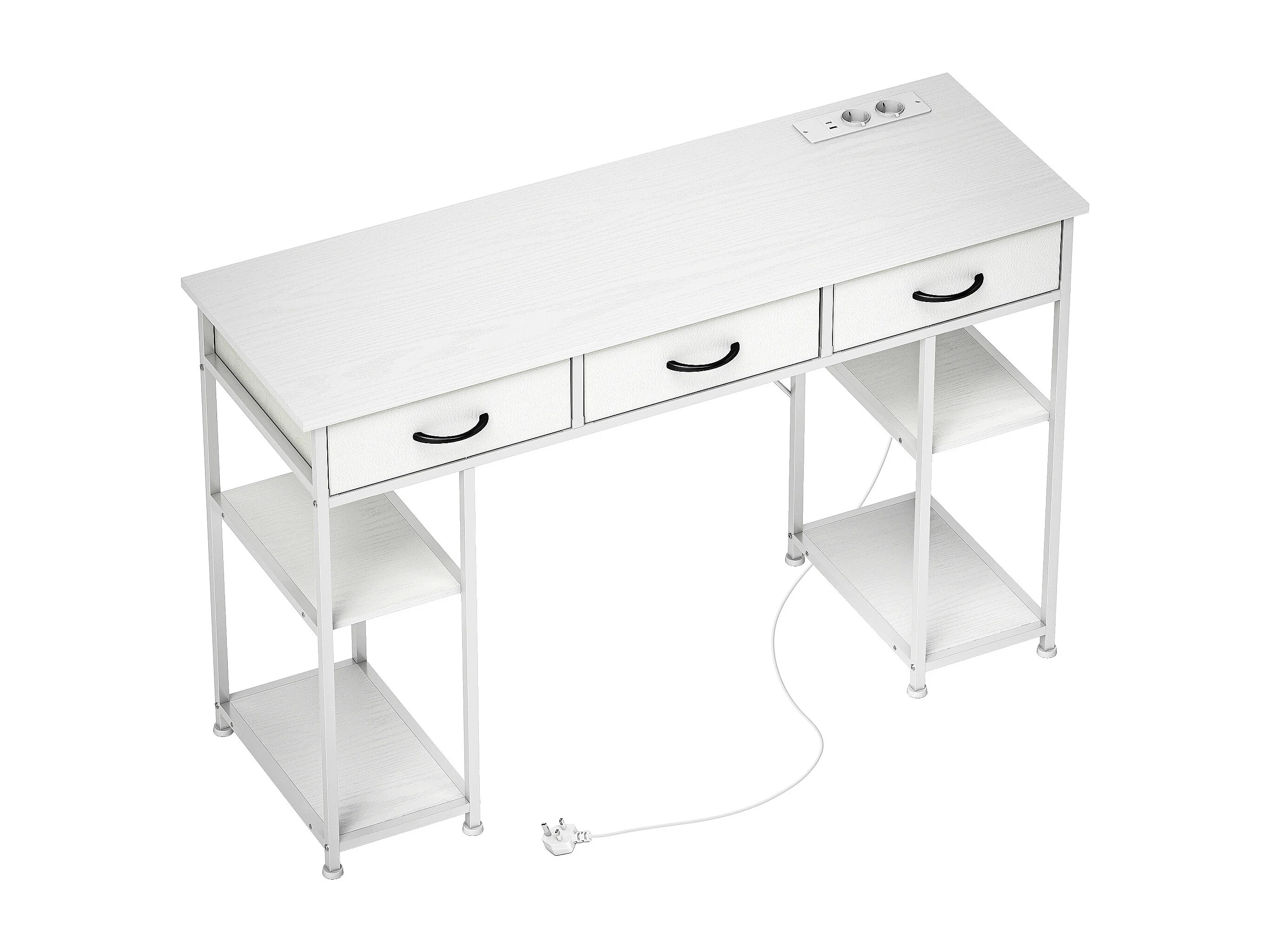 Bureau informatique multimédia multi-rangements 3 tiroirs 2 étagères 120L x 49l x 72H cm blanc