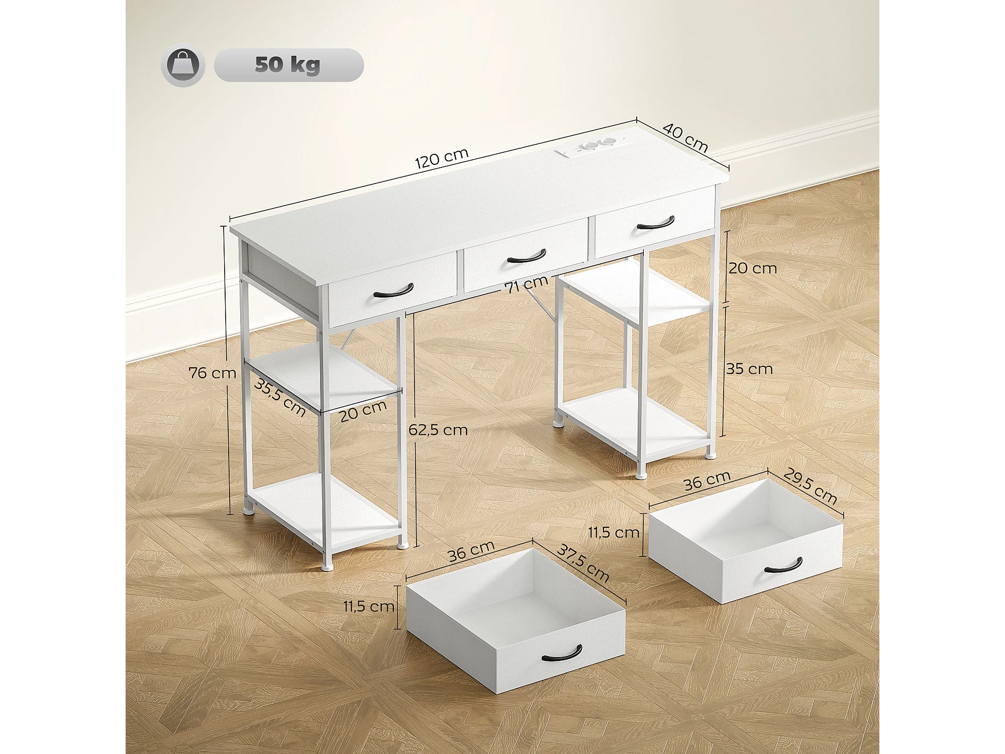 Bureau informatique multi-rangement 2 prises USB 2 prises secteur dim. 120 x 40 x 76 cm blanc