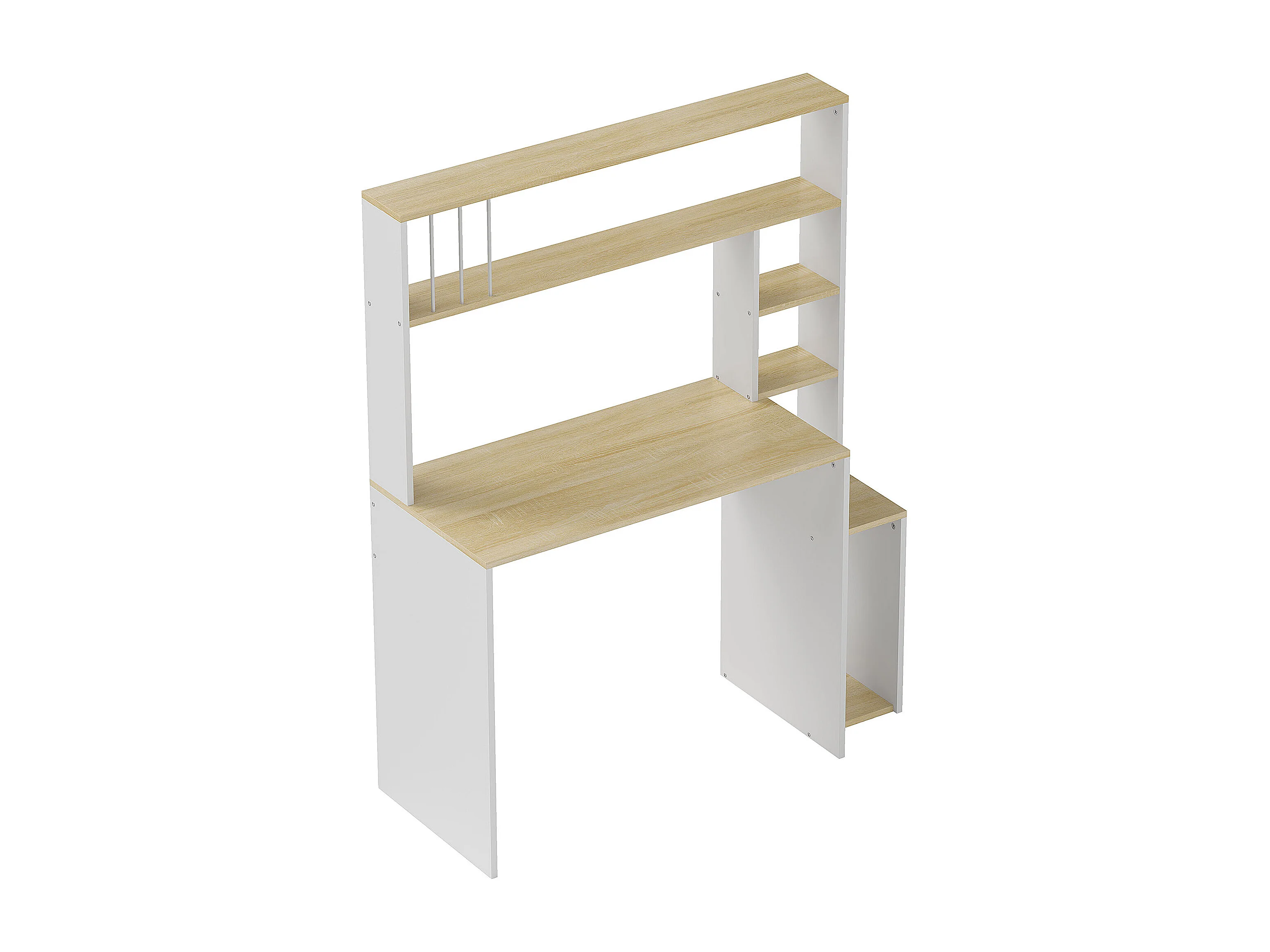 Bureau informatique multi-rangement - 4 étagères, espace unité centrale - blanc effet chêne clair