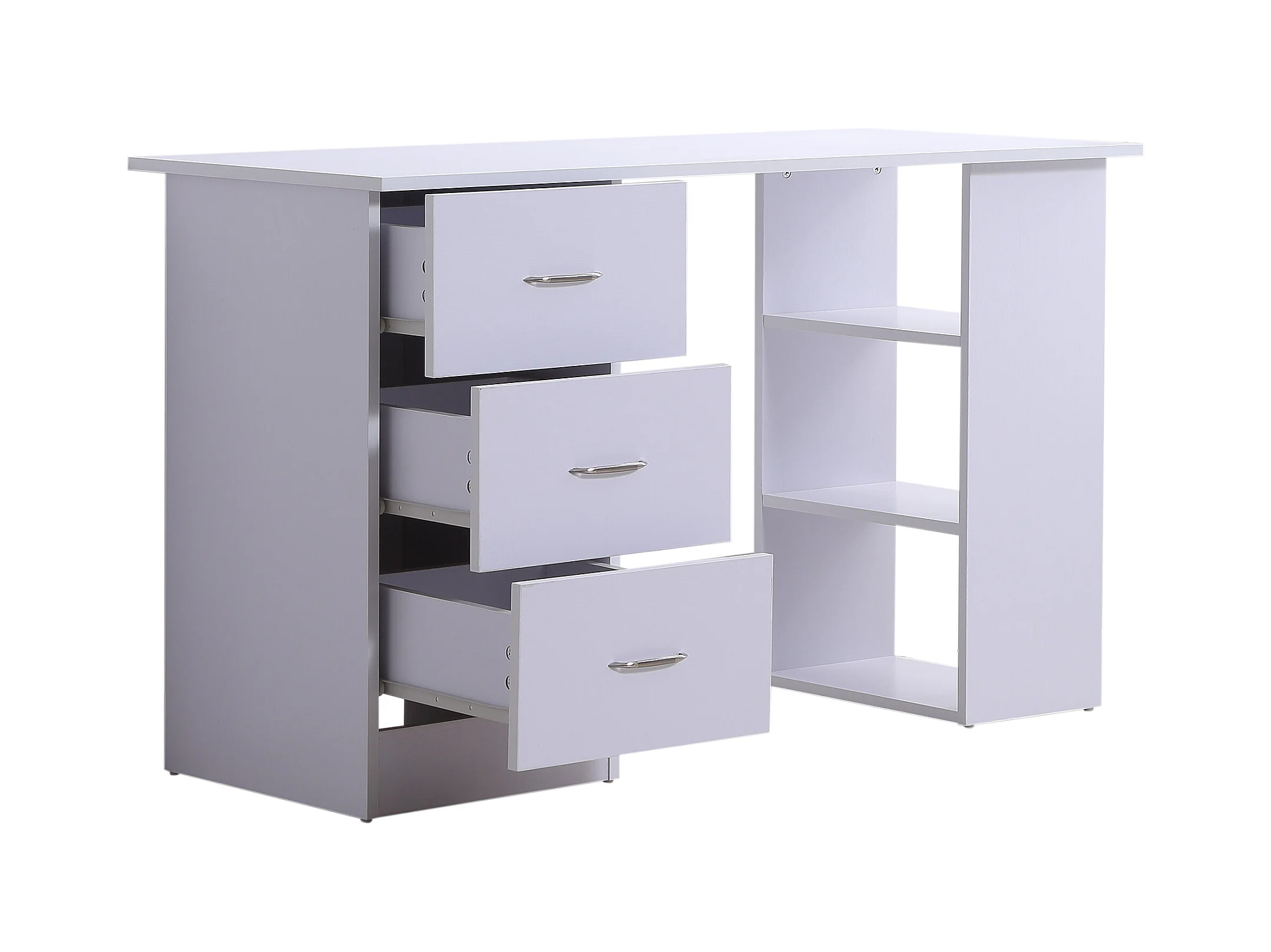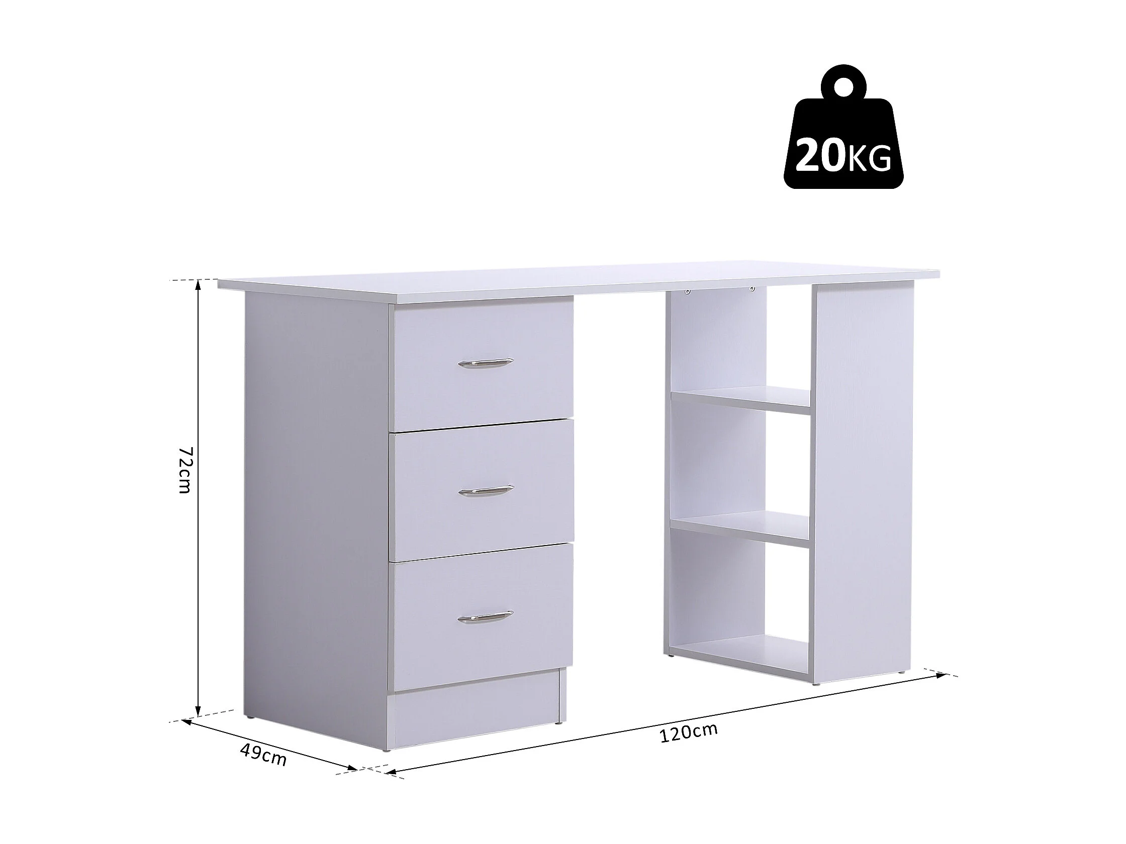 Bureau informatique table multi-fonctions 3 tiroirs 2 étagères dim. 120L x 49l x 72H cm MDF blanc