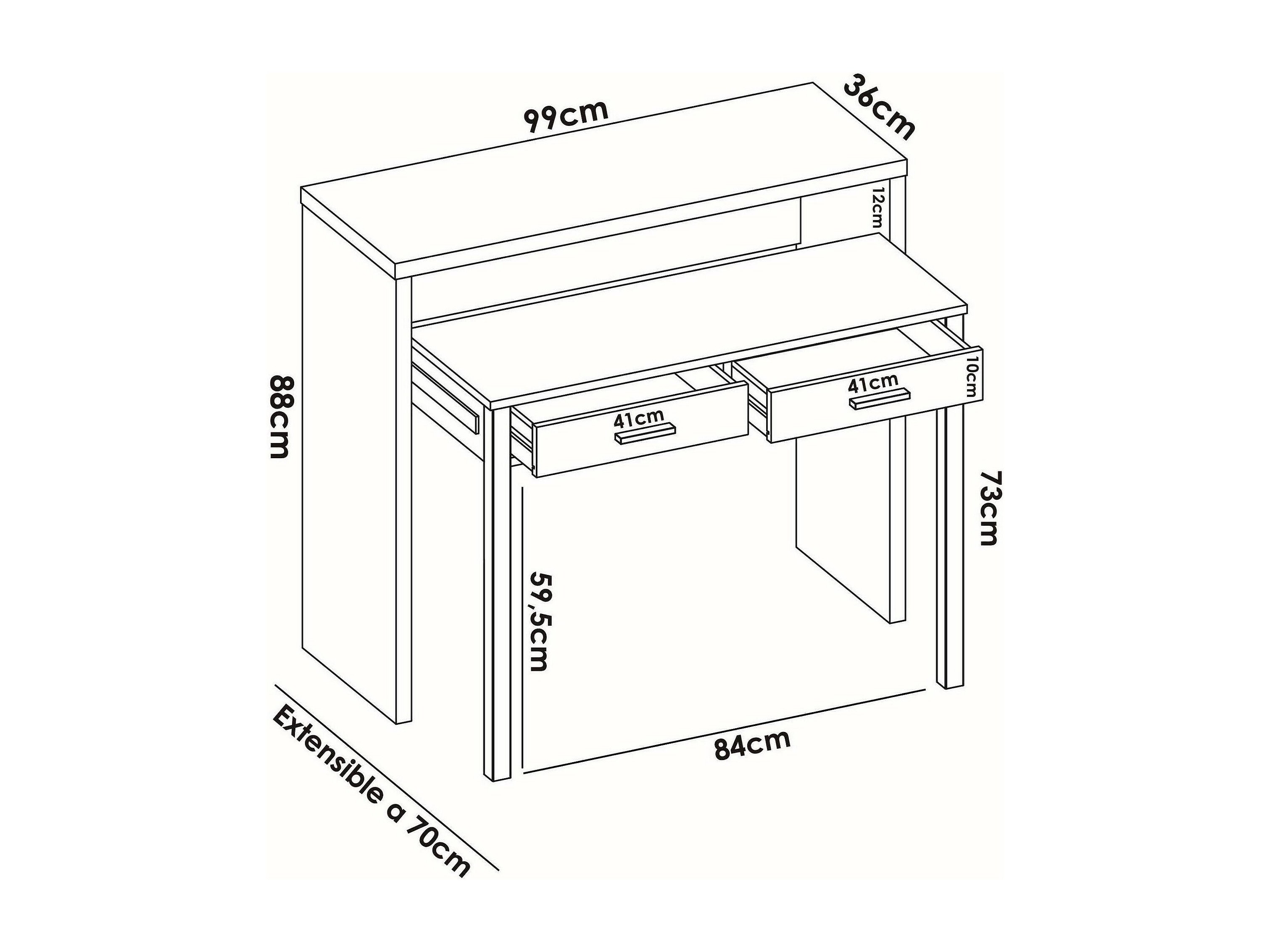 Bureau Losetta, Bureau multi-positions avec plateau extractible, Console d'étude linéaire avec 2 tiroirs, 99x70h88 cm, Blanc