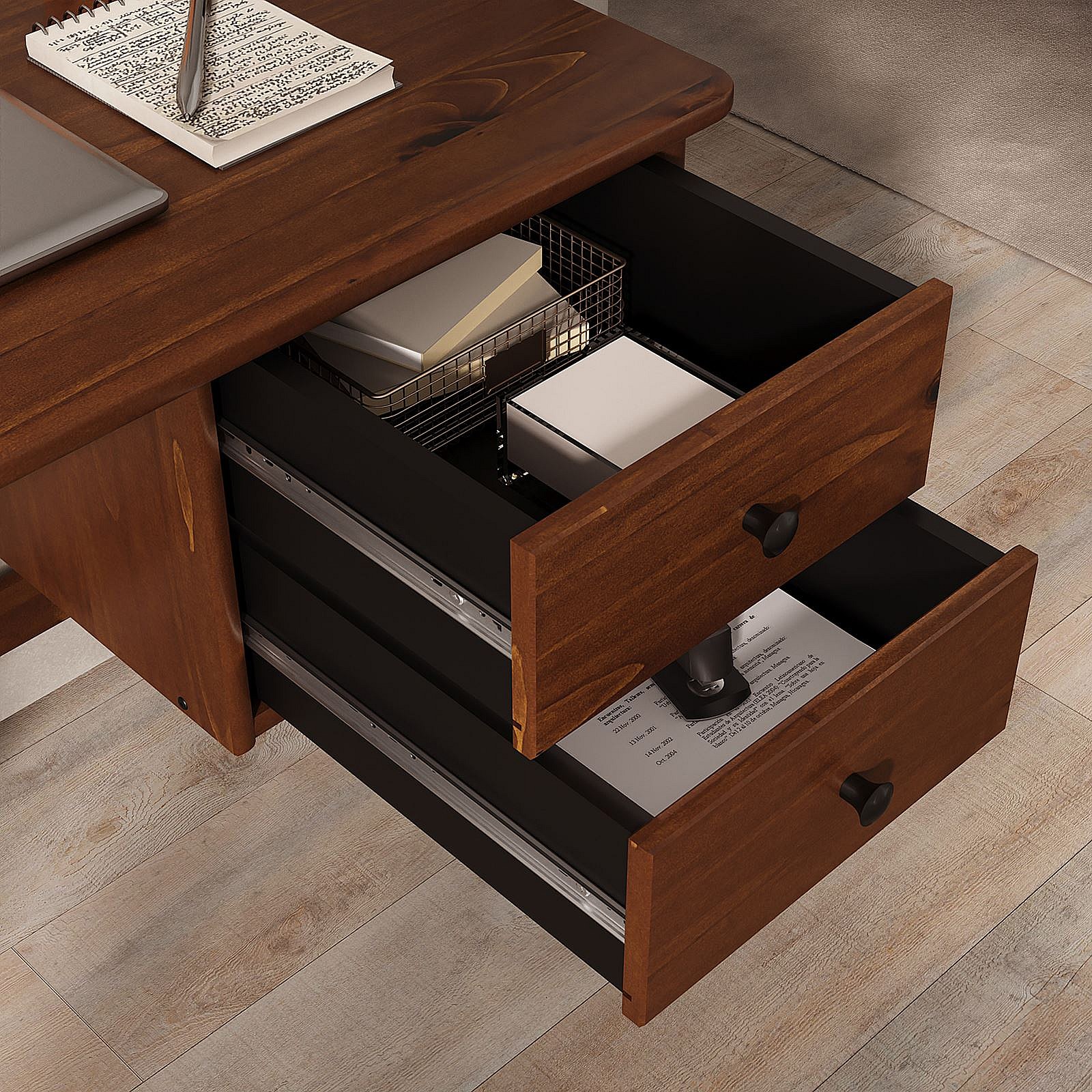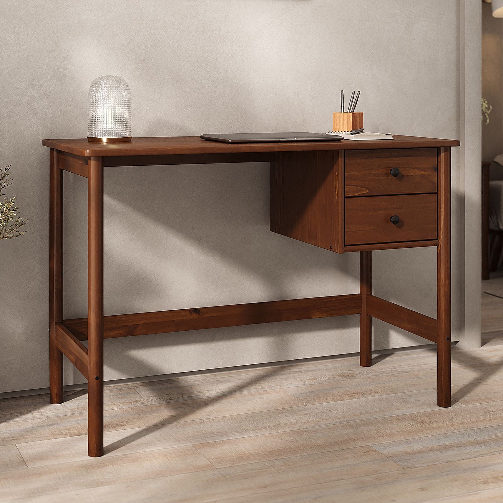 Bureau MARLO H 76 cm avec 2 Tiroirs en Bois Massif Coloris Châtaignier, Bureau Droit avec Rangement Intégré