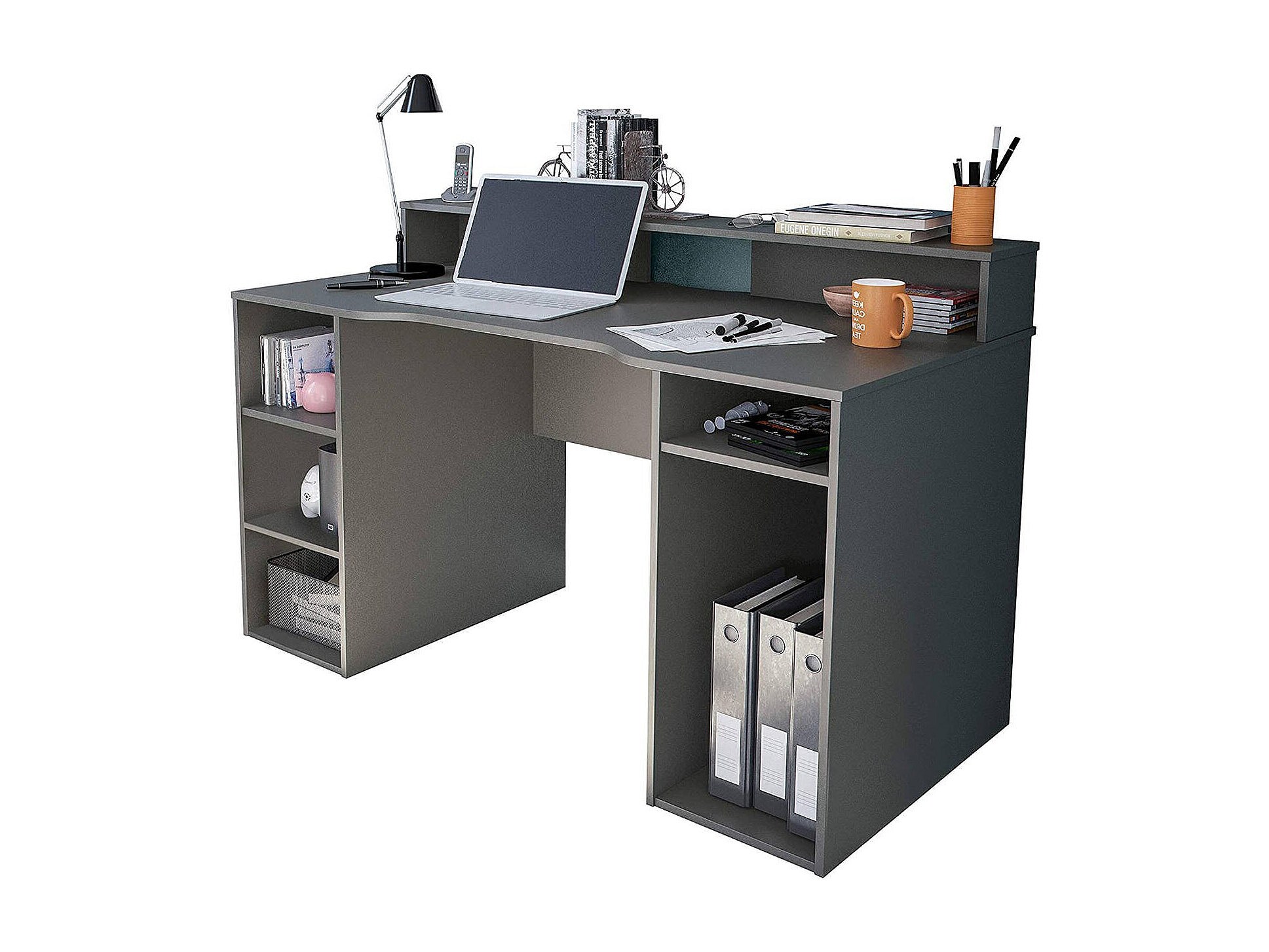 Bureau Dlucum, Bureau de jeu multifonction moderne, Table d'étude pour PC et support CD, Table d'étude avec étagères, 136x67h88 cm, Anthracite