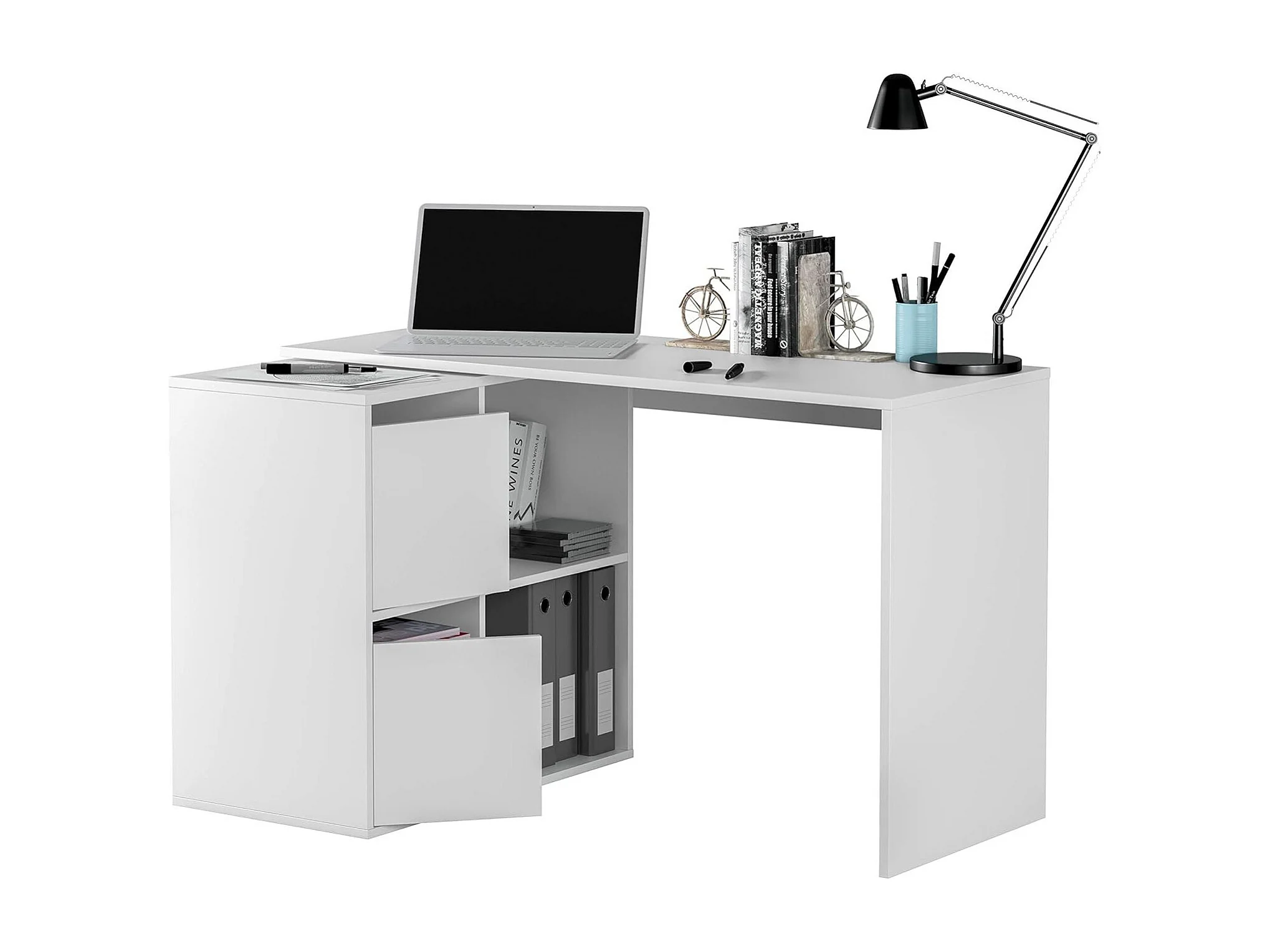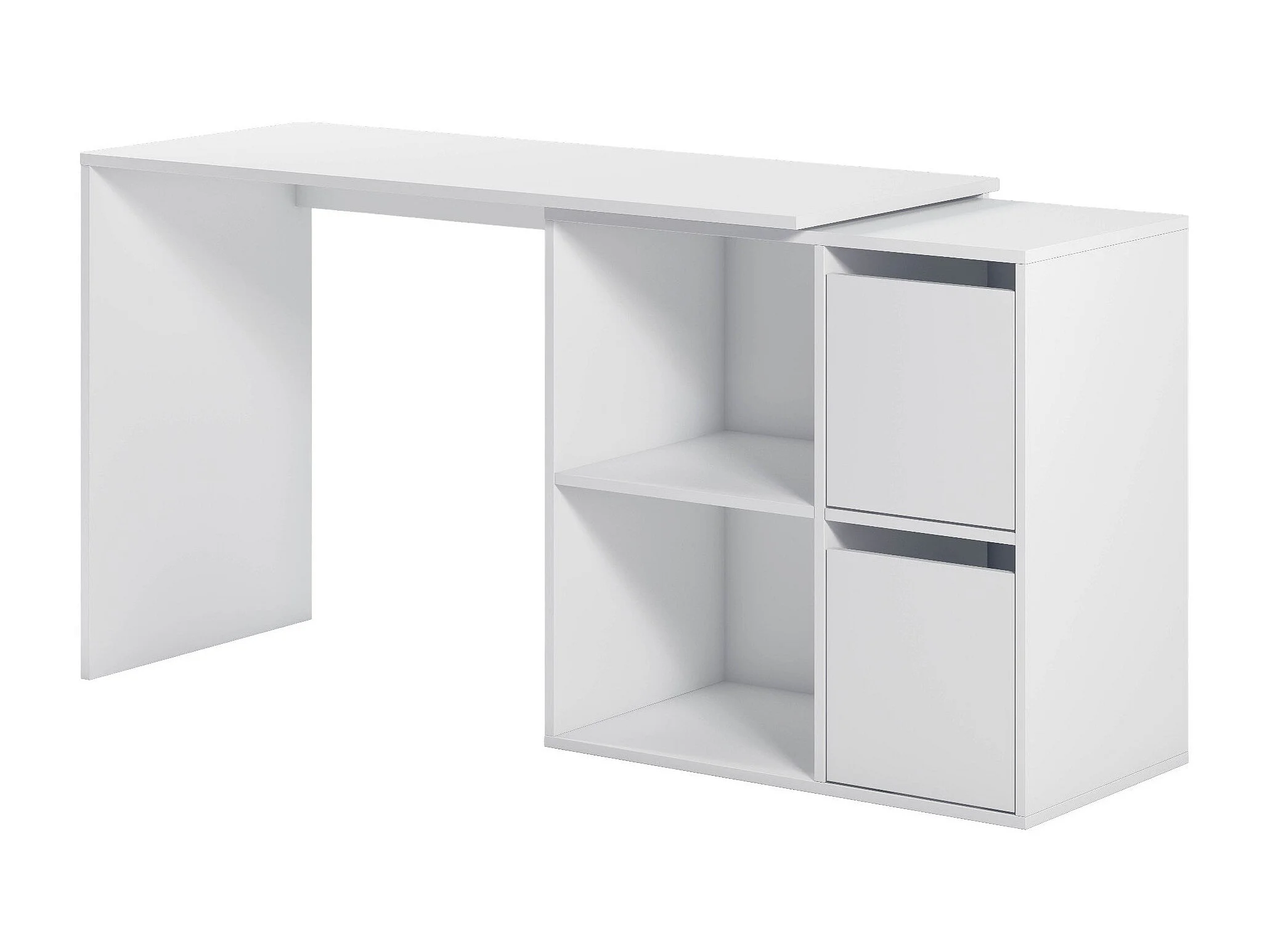 Bureau Divkovi, Bureau multifonction modulaire avec étagère, Table d'étude ou de bureau multi-positions avec montage en coin, 152x49h74 cm, Blanc