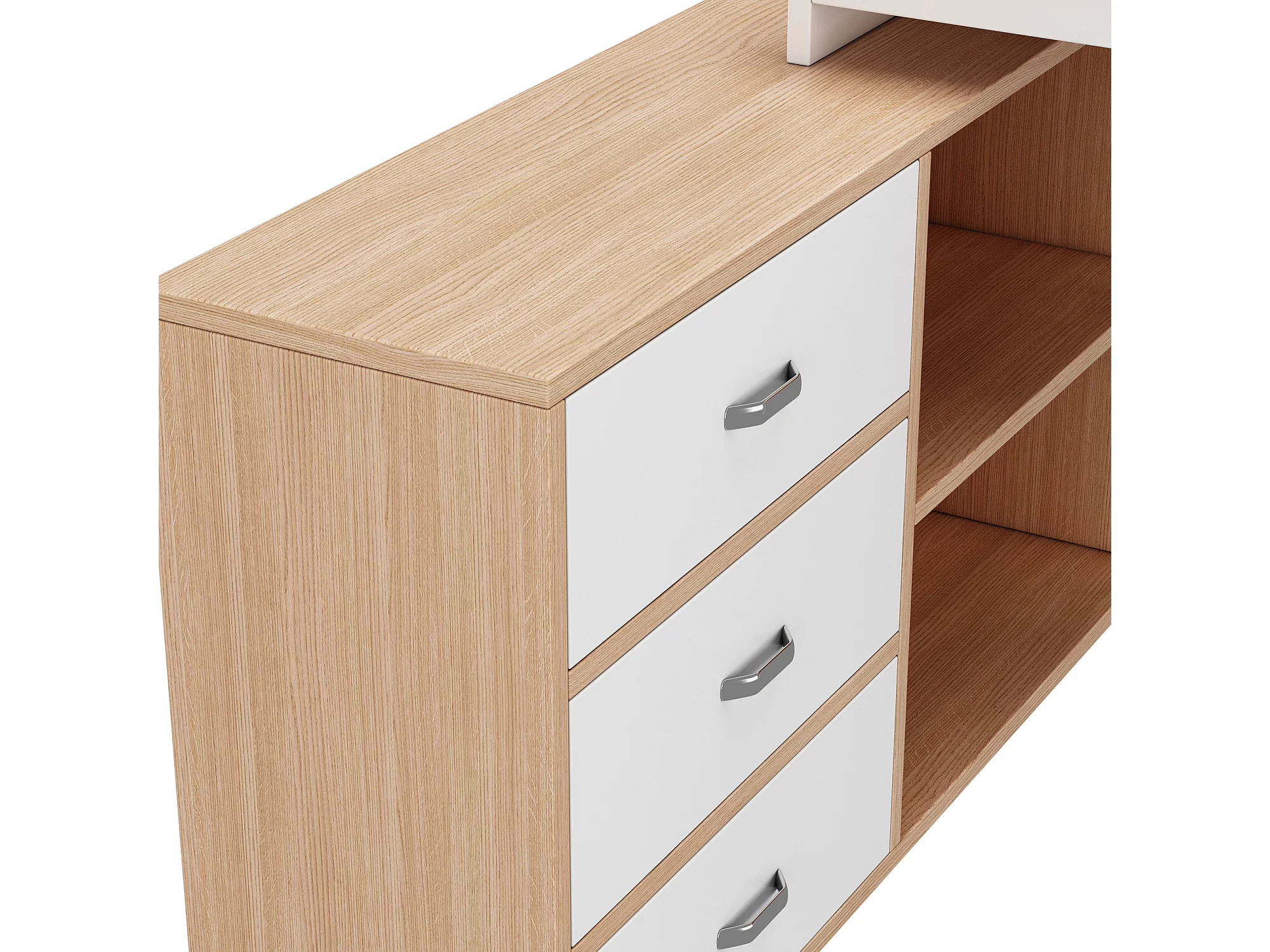 Bureau multifonction L-type avec 3 tiroirs et 2 niches style industriel, DOBBY