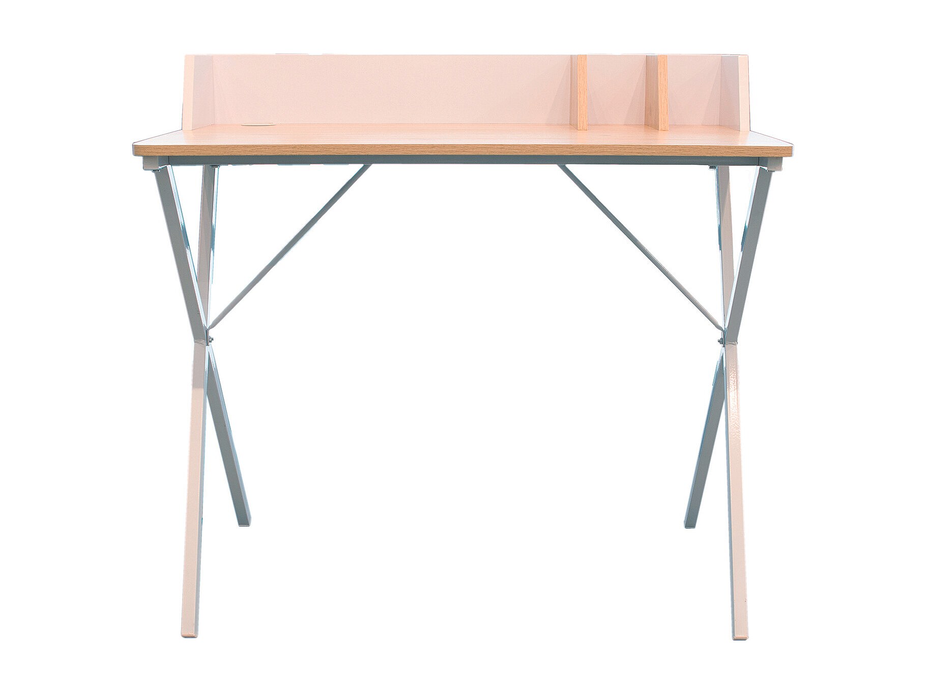 Bureau,table de travail en aggloméré finition chêne doré avec pied en métal blanc-Longueur 137.5 x Profondeur 67 x Hauteur 76 cm