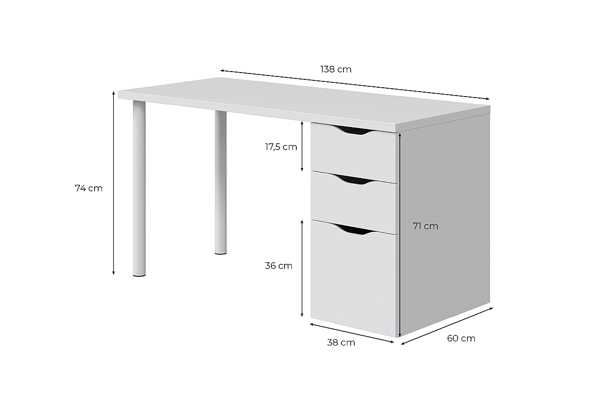Bureau réversible avec caisson 2 tiroirs L138 cm
