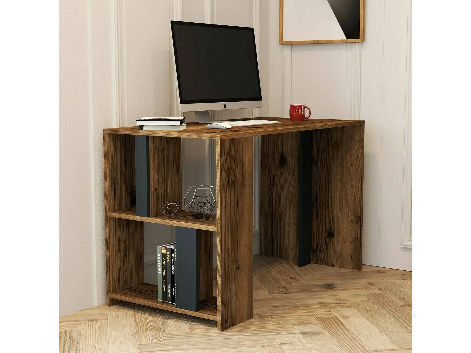 Bureau Schedar, Pupitre polyvalent, Table de bureau pour PC, Plan de travail, 120x60h75 cm, Noyer et Anthracite