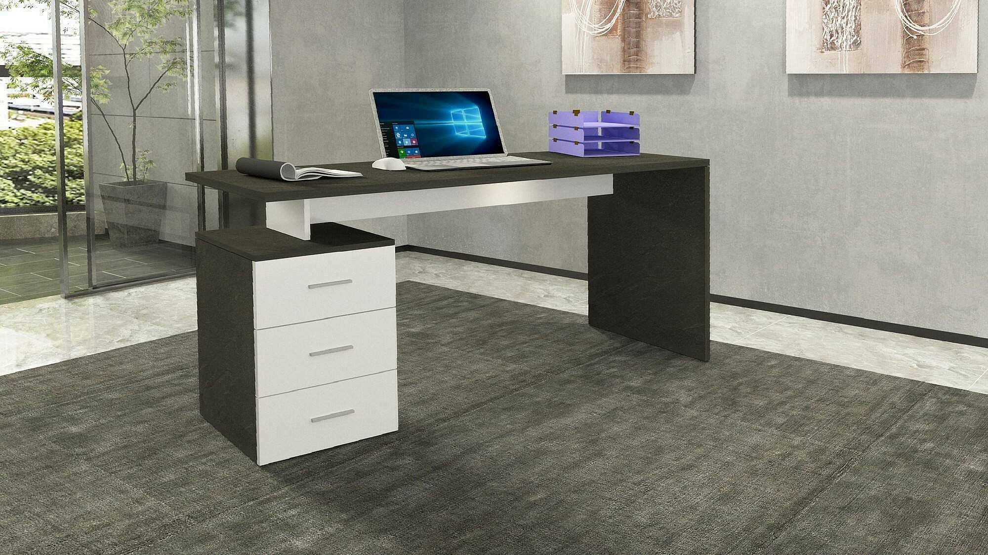 Bureau Siro, Bureau Linéaire, Bureau polyvalent, Bureau gain de place multi-positions, 160x60h75 cm, Blanc et Ardoise