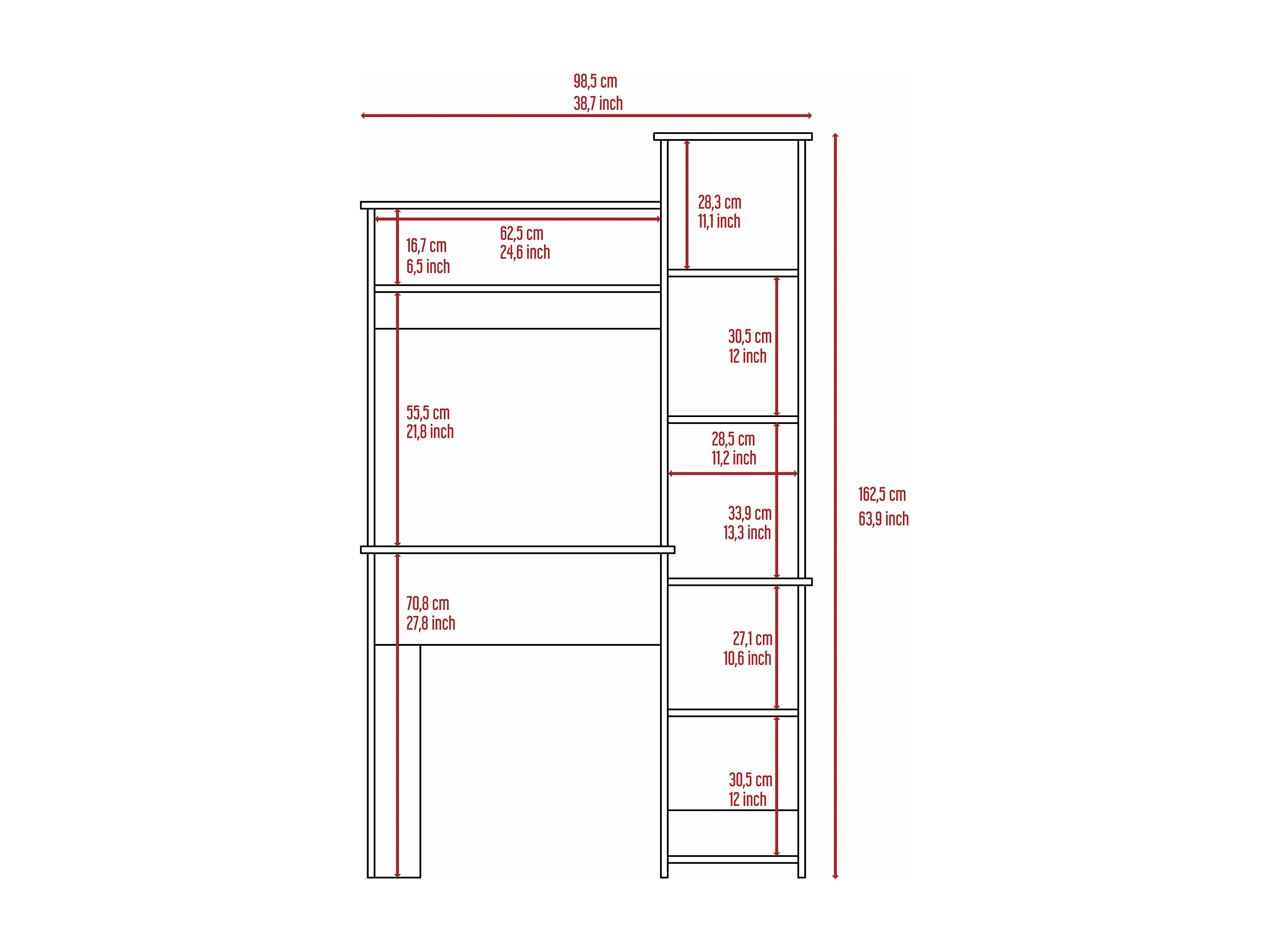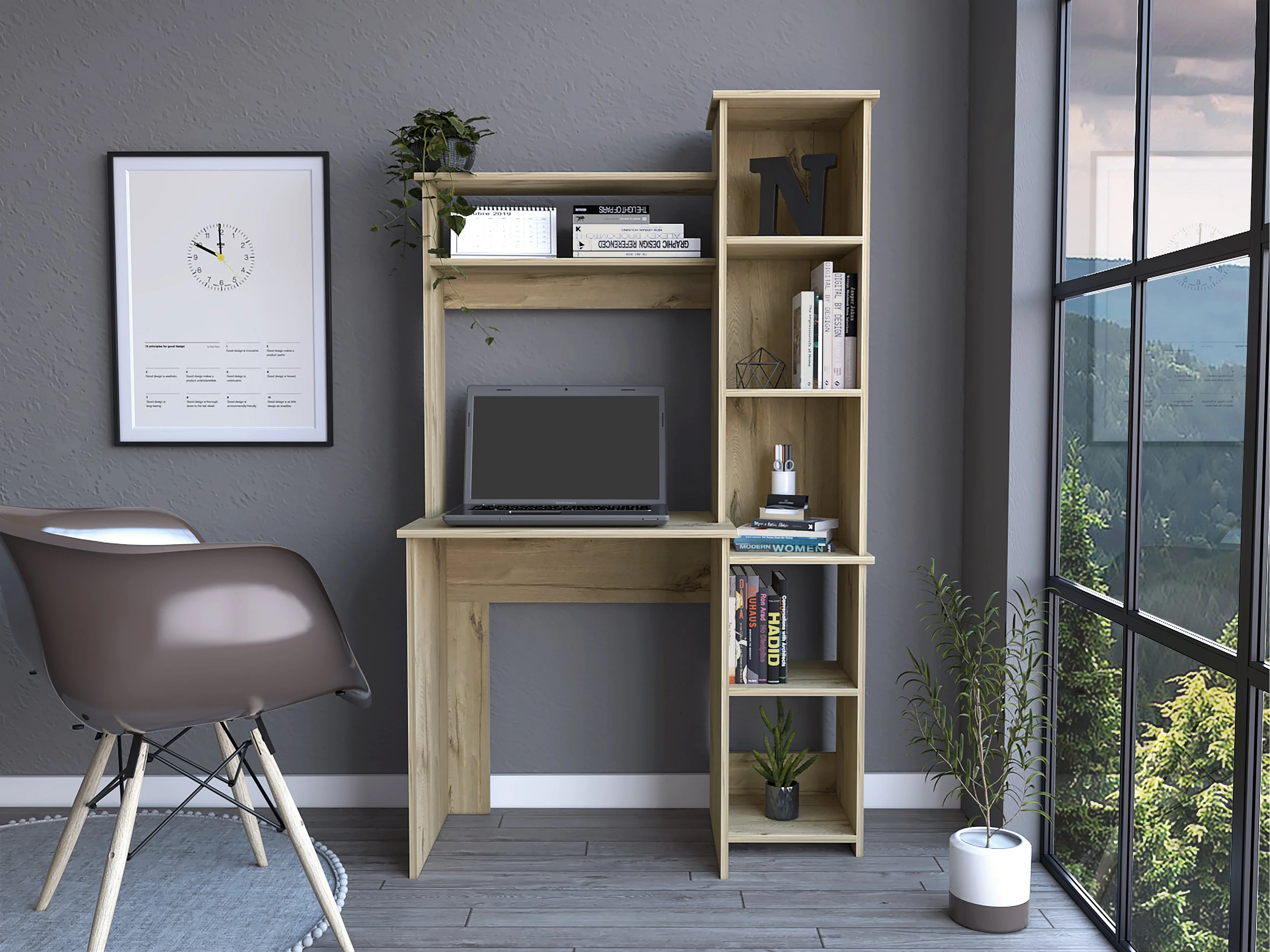 Bureau Versailles avec bibliothèque en mélamine avec 6 étagères 162.30 cm X 98.29 cm X 45.21 cm , Beige