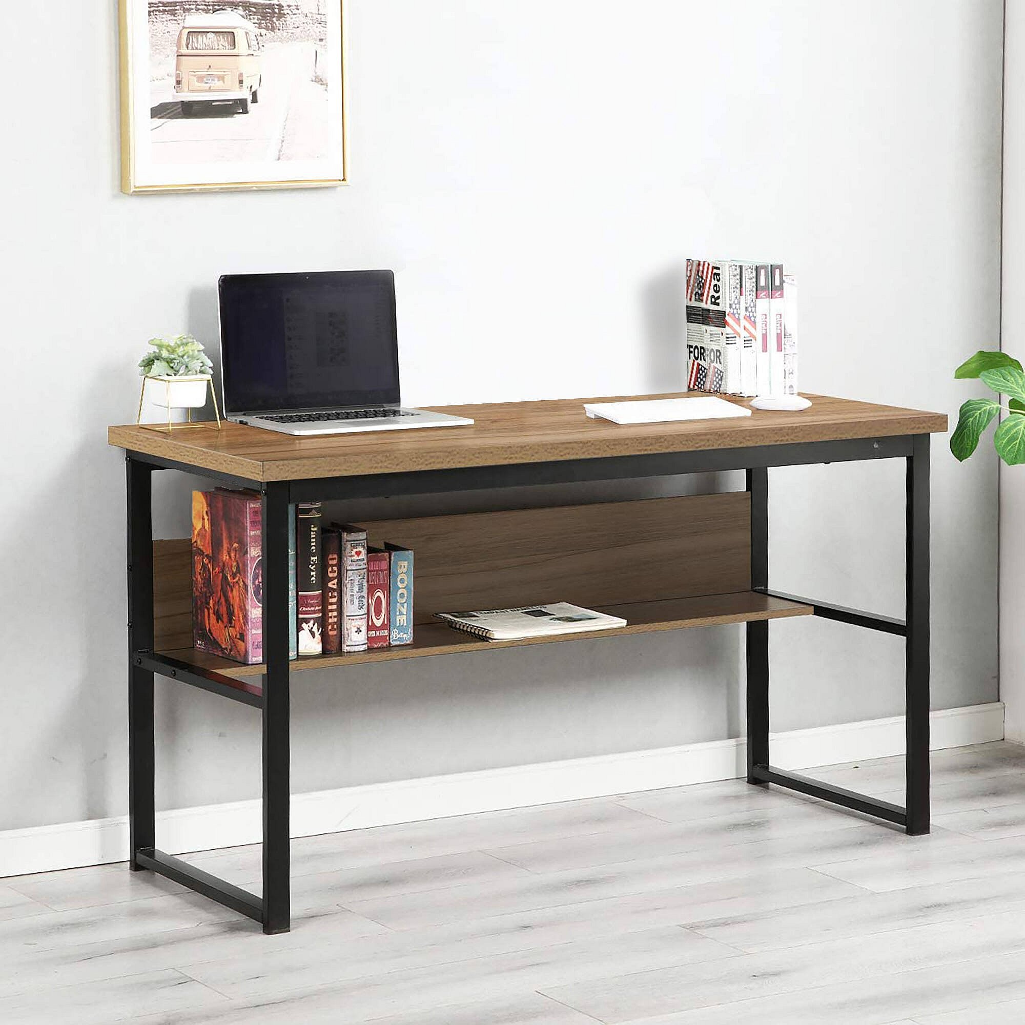 Bureau Dmusell, Bureau linéaire, Bureau polyvalent, Bureau fixe peu encombrant, 55x139h74 cm, Noir et Chêne