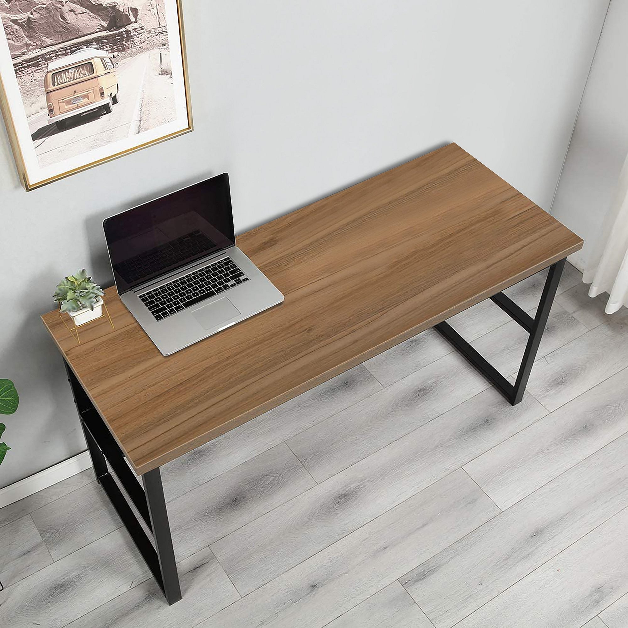 Bureau Villava, Bureau linéaire, Bureau polyvalent, Bureau fixe peu encombrant, 55x139h74 cm, Noir et Chêne