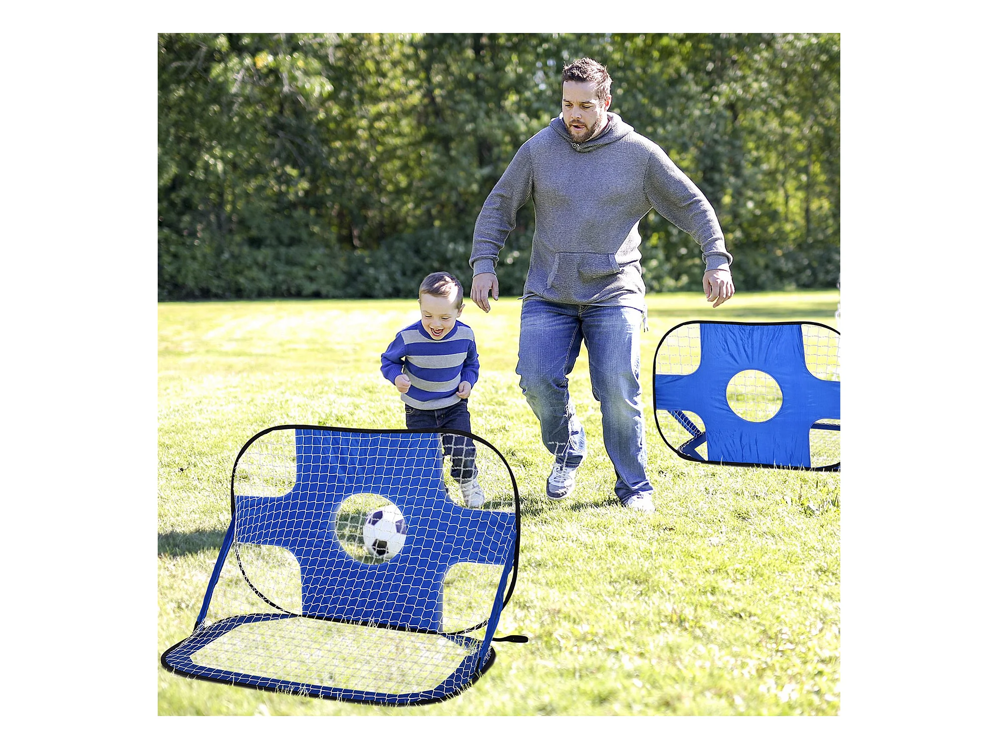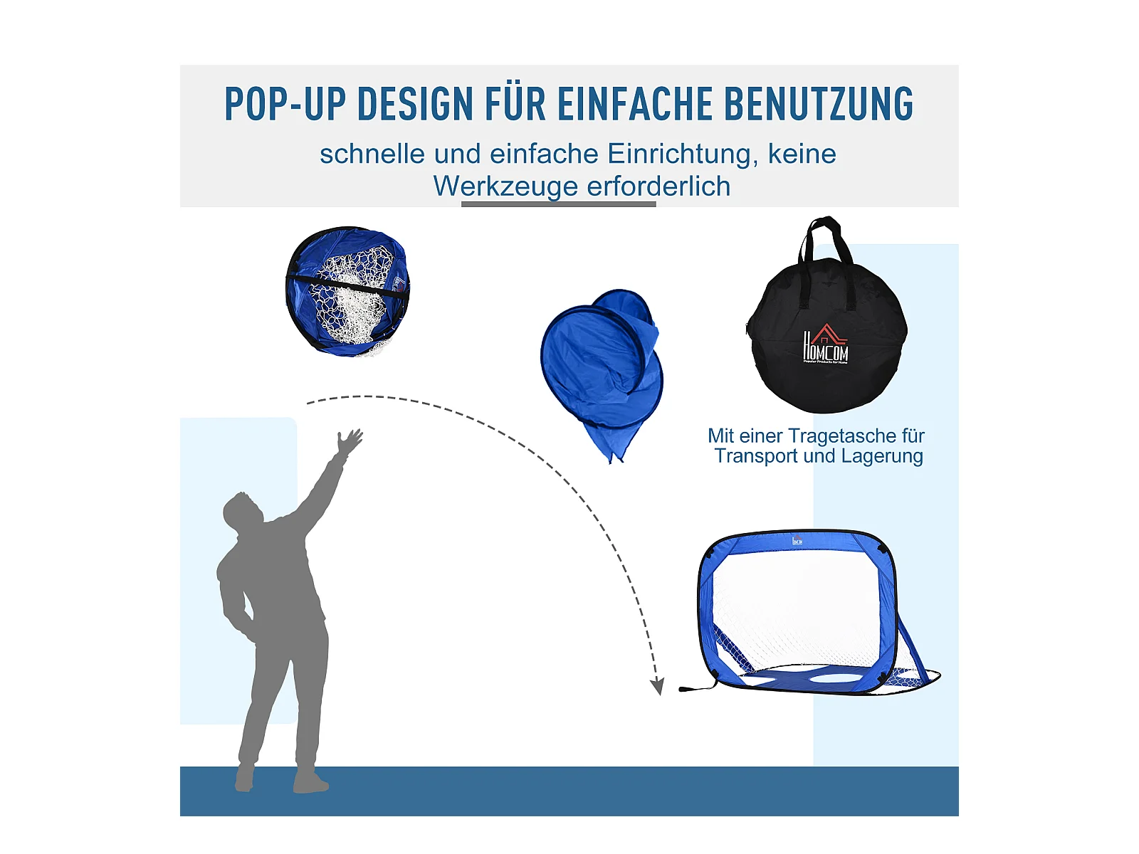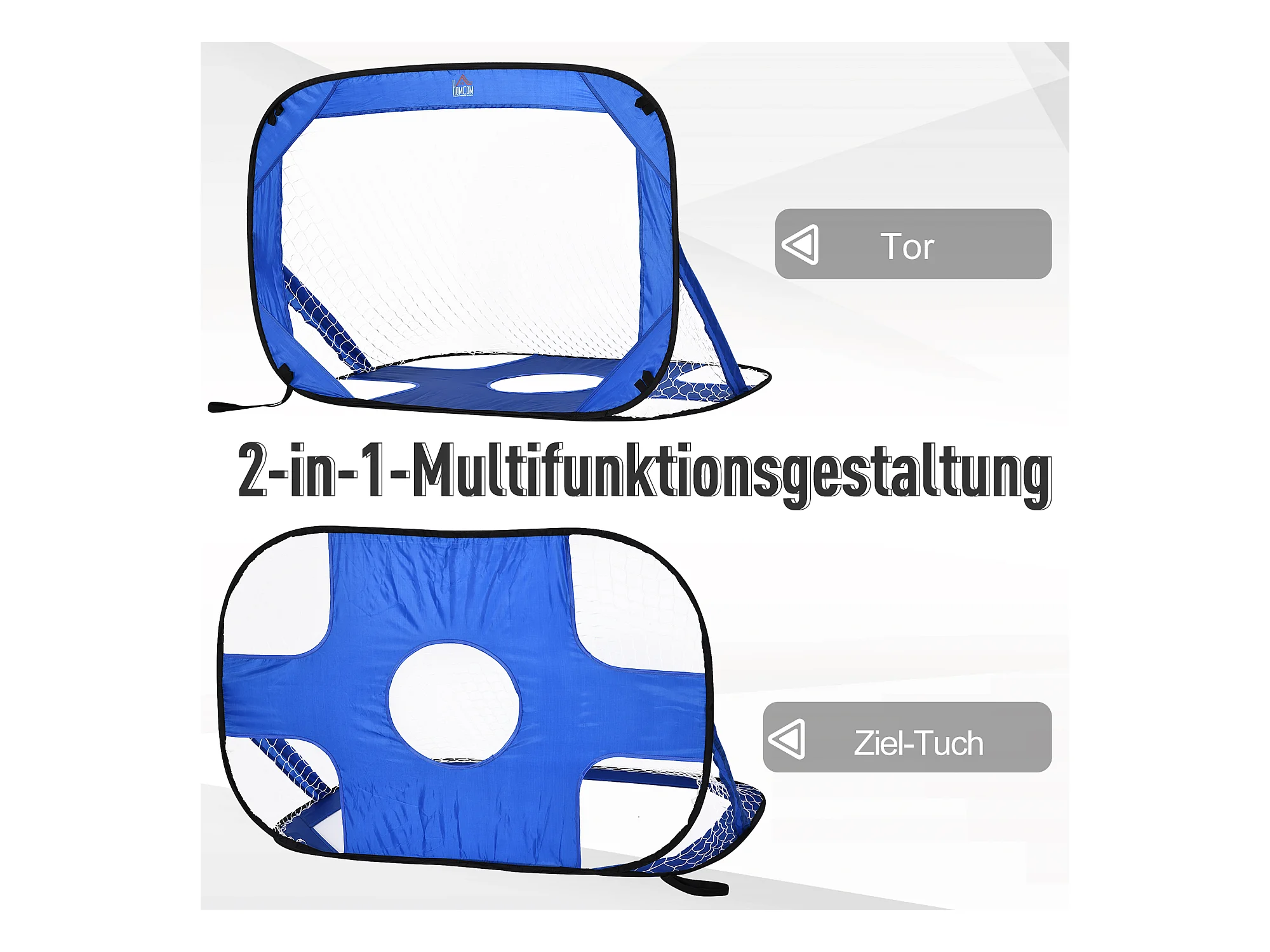 But de football Pop-Up, 2 pièces, portable et pliable, avec sac de transport, bleu (123x80x80 cm)