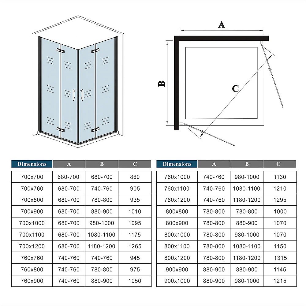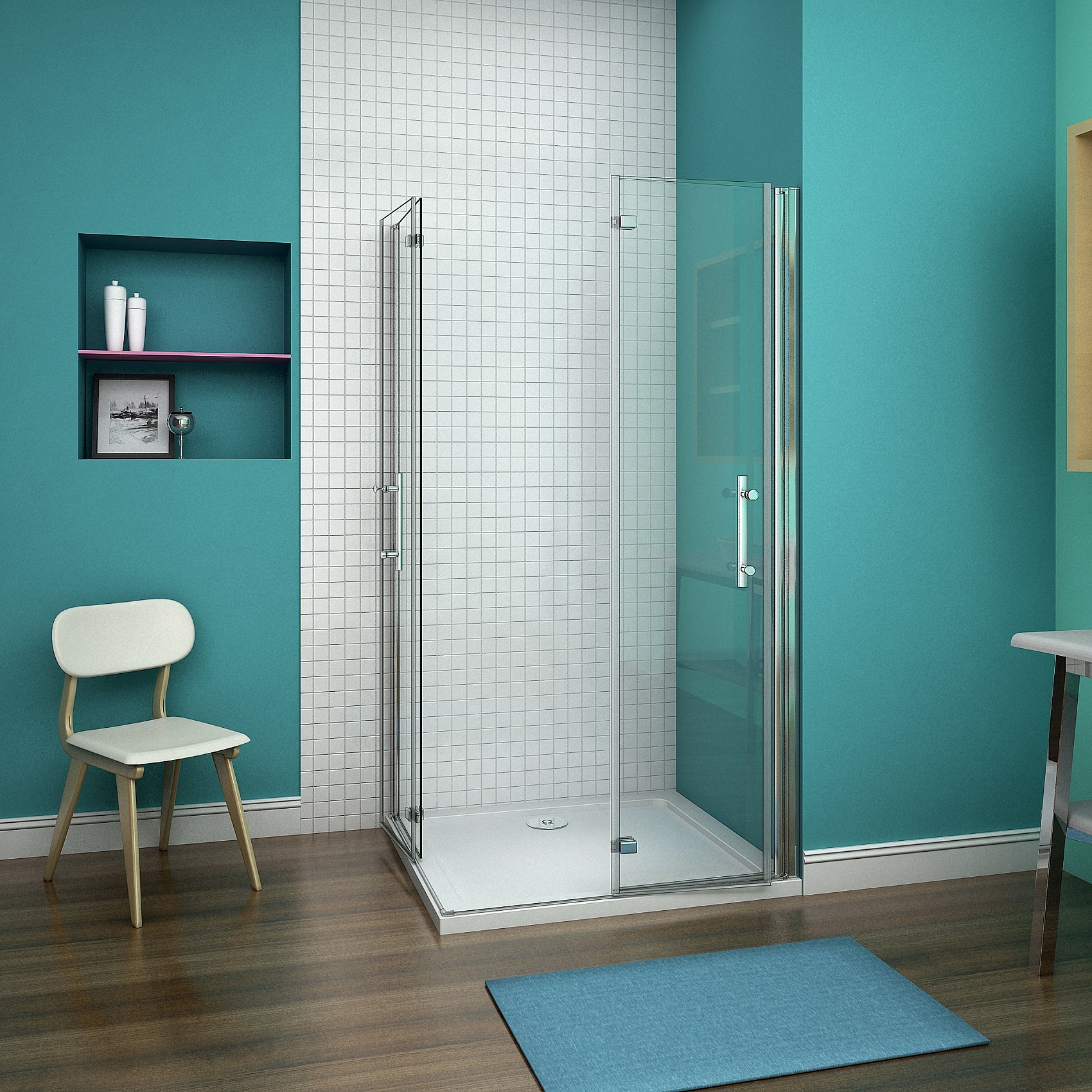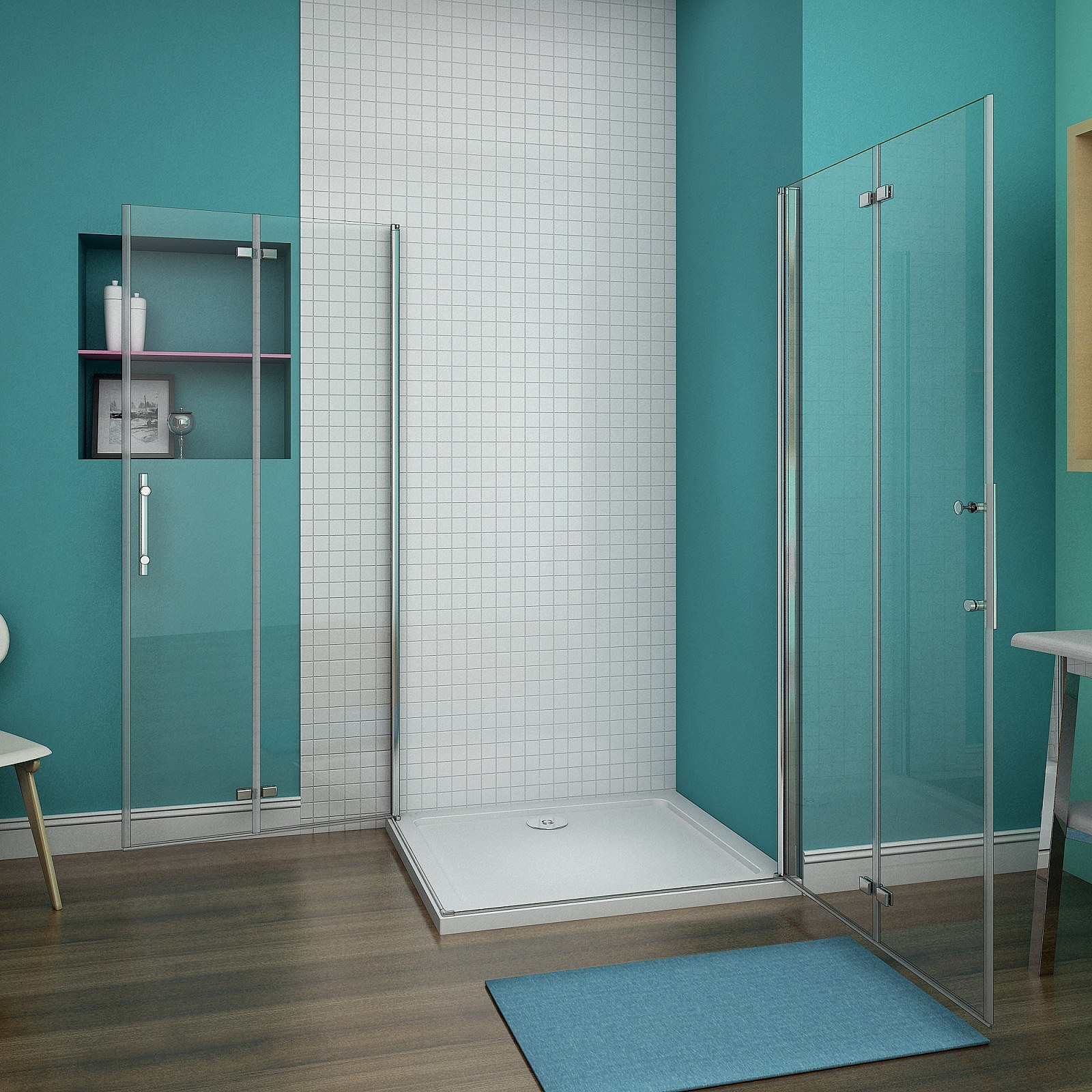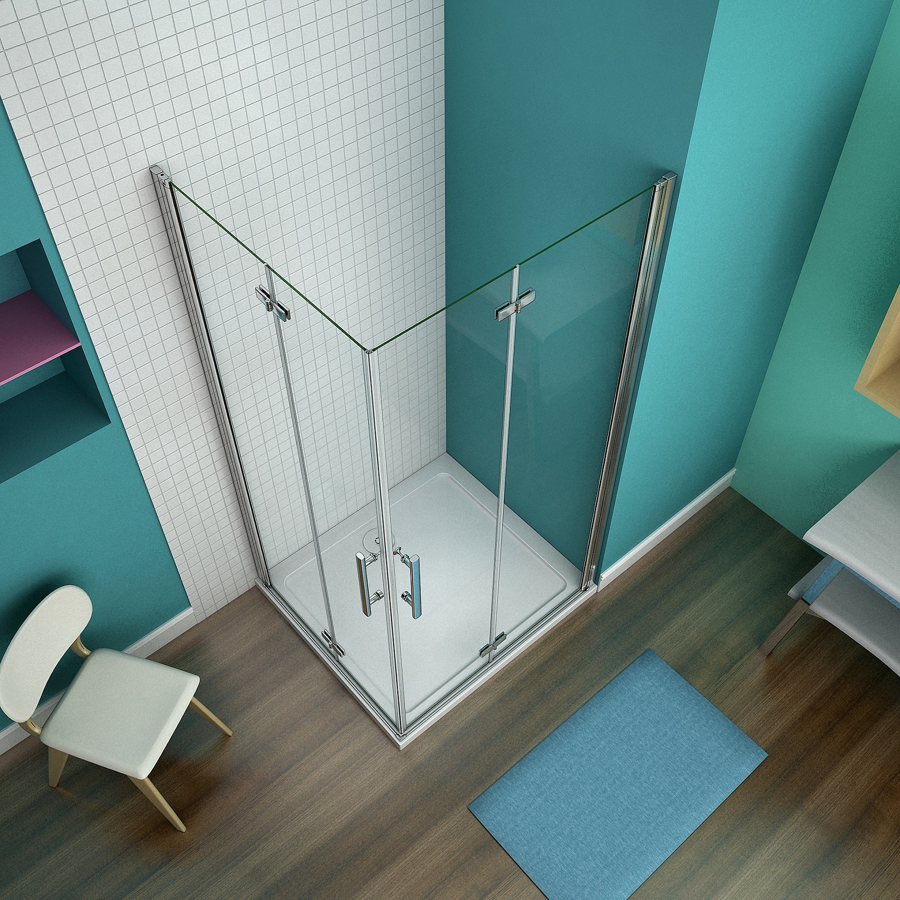 Cabine de douche pivotante et pliante 110x100x195cm en 6mm verre securit anticalcaire, poignée en inox