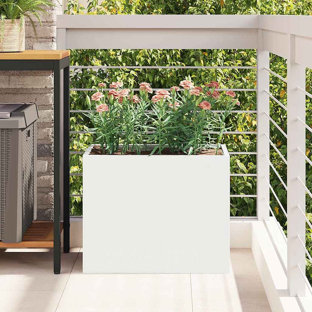 Cache-pot de jardin | Jardinière Blanc 50 x 32 x 40 cm Acier laminé à froid
