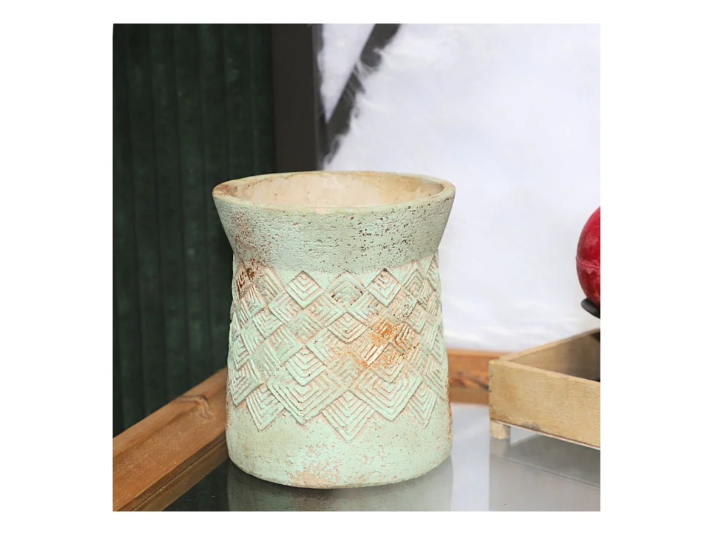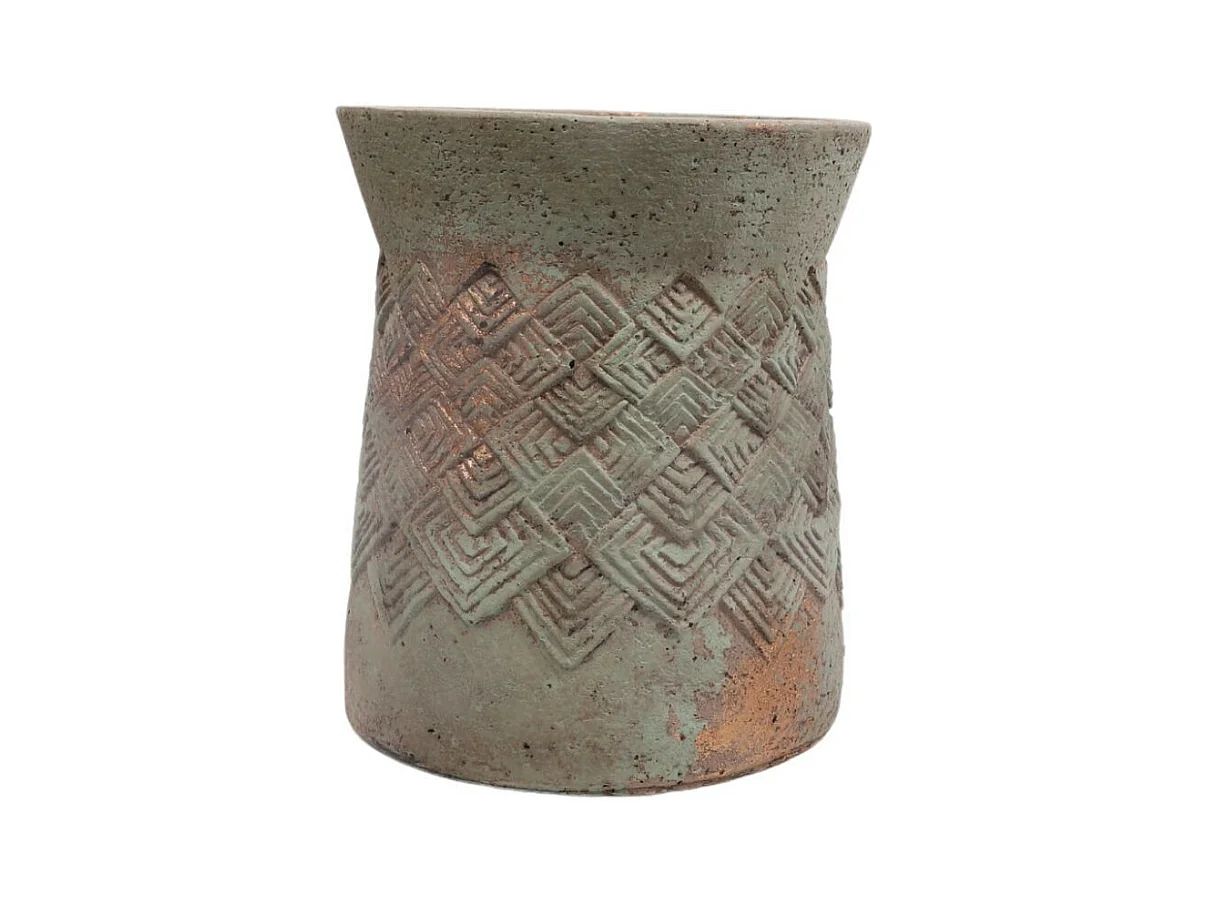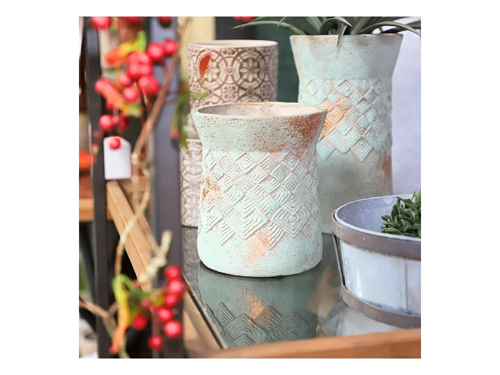 Cache-pot rond en ciment vieilli bleuté et cuivré - Ø.17,5 x Ht.15,5 cmØ.17,5 x Ht.15,5 cm