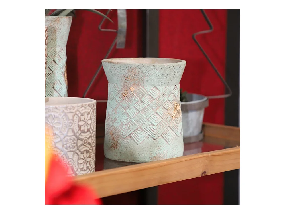 Cache-pot rond en ciment vieilli bleuté Ø.14 x Ht.13 cm