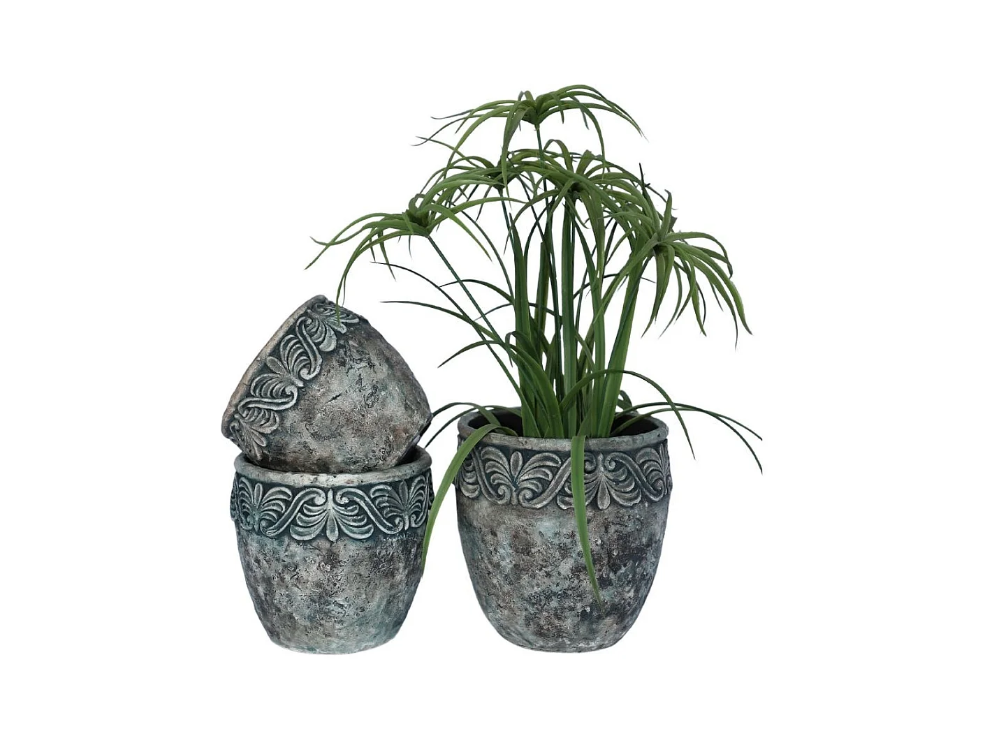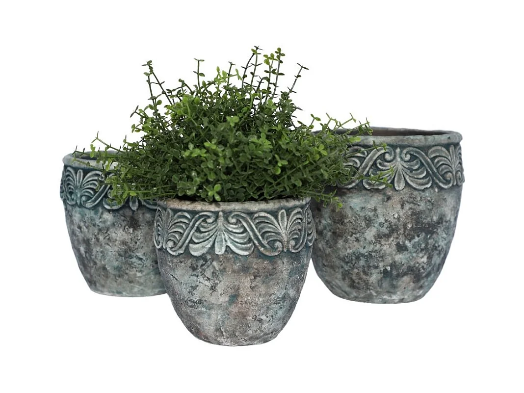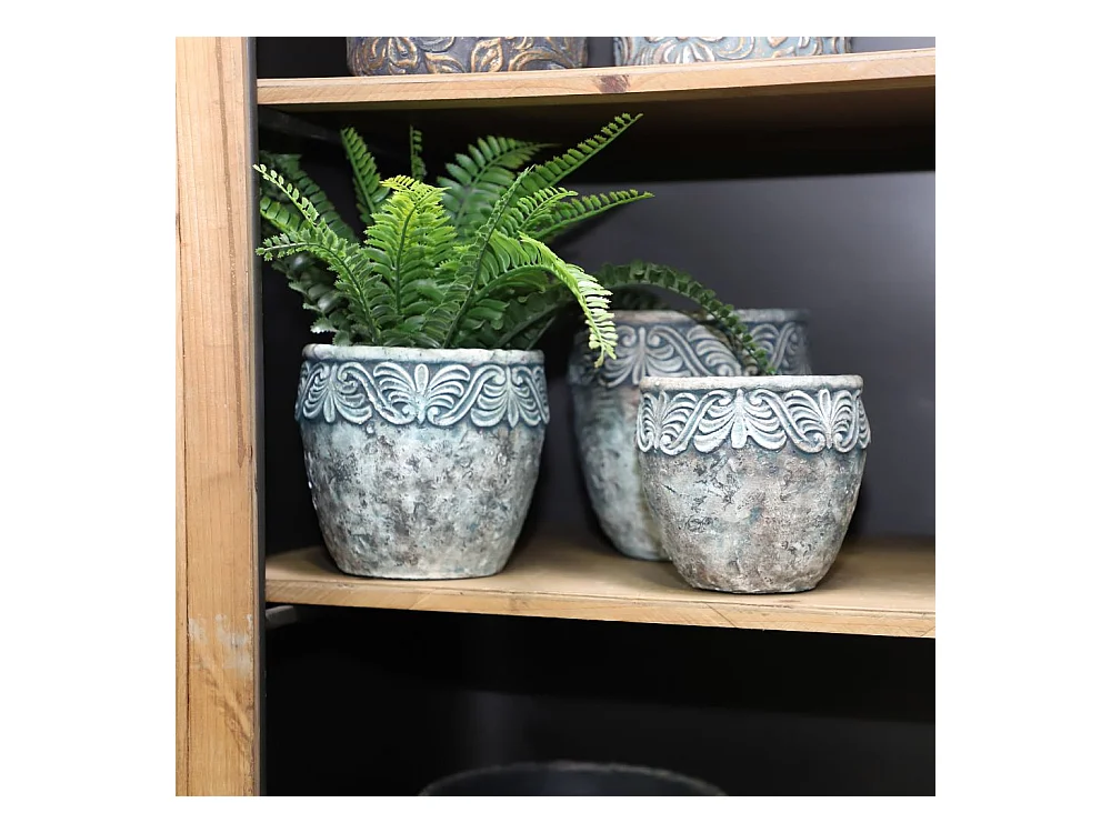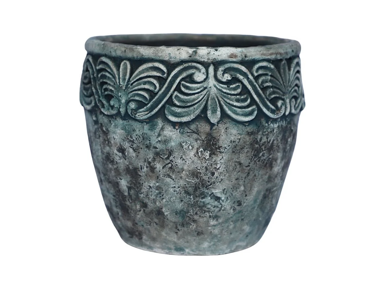 Cache-pot rond en ciment vieilli bleuté Ø.14 x Ht.13 cm