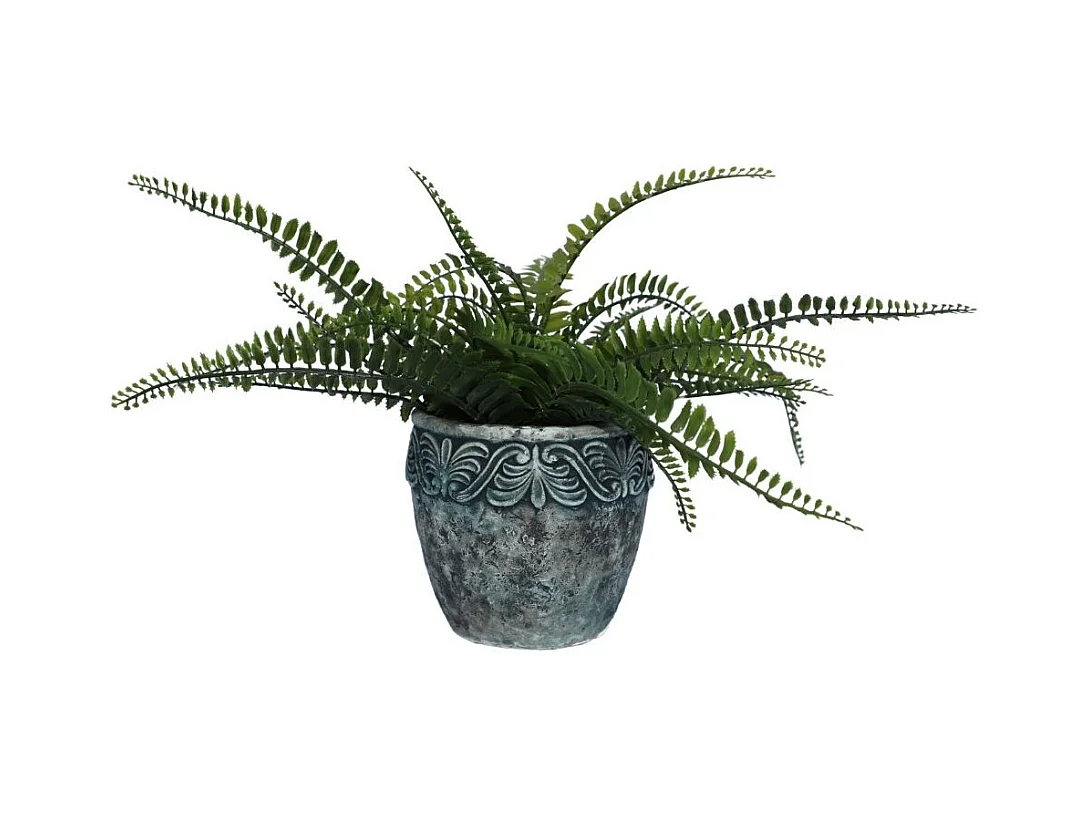 Cache-pot rond en ciment vieilli bleuté Ø.15,5 x Ht.15,5 cm