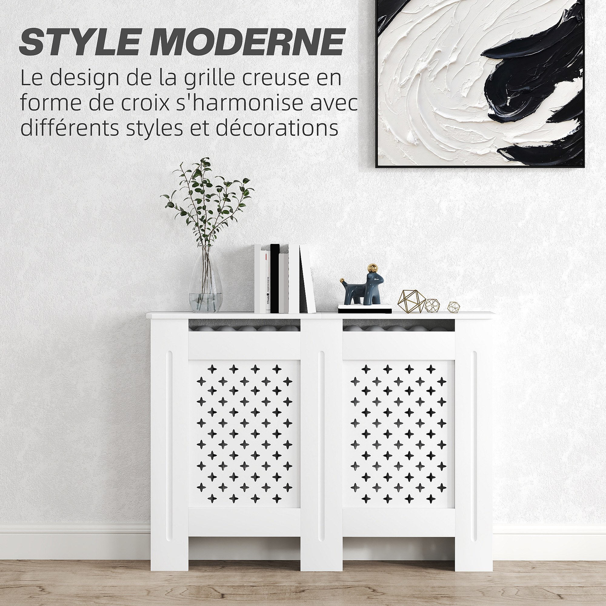 Cache-radiateur motif nid d'abeille - dim. 112L x 19l x 81H cm - MDF blanc