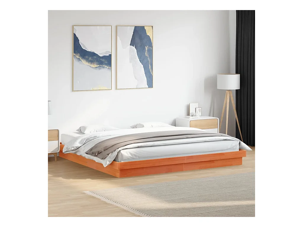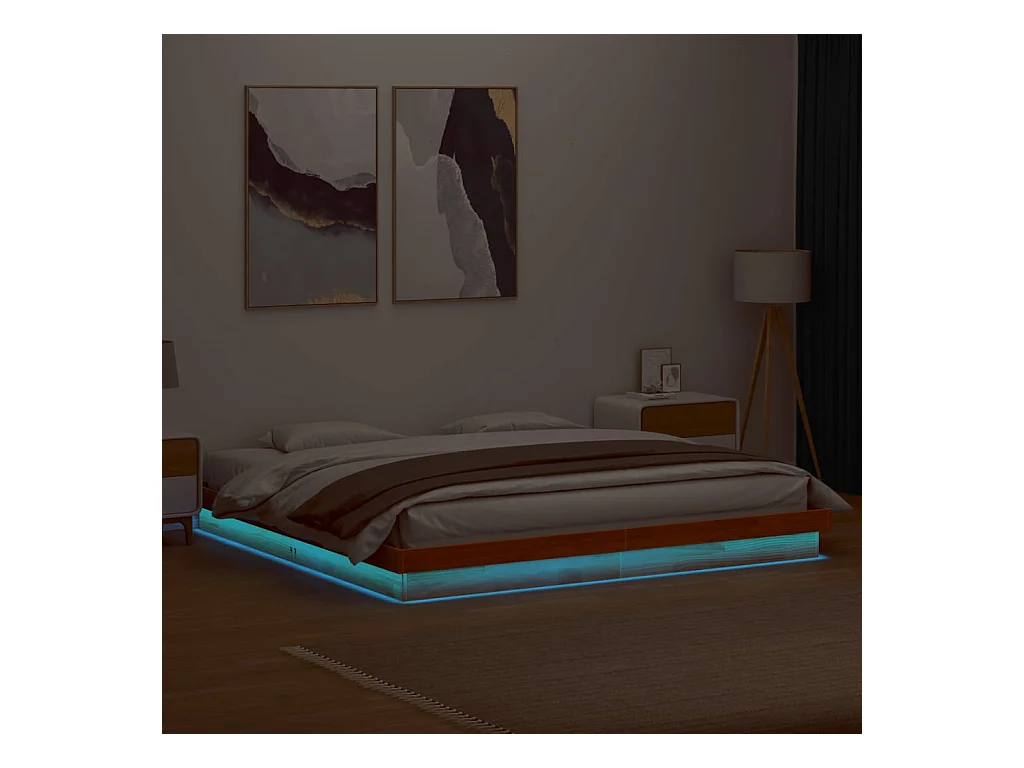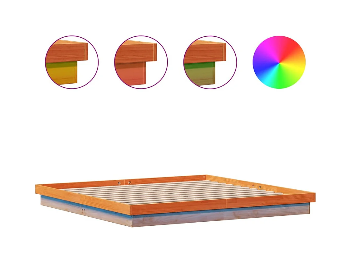 Cadre de lit à LED marron 200x200 bois de pin massif