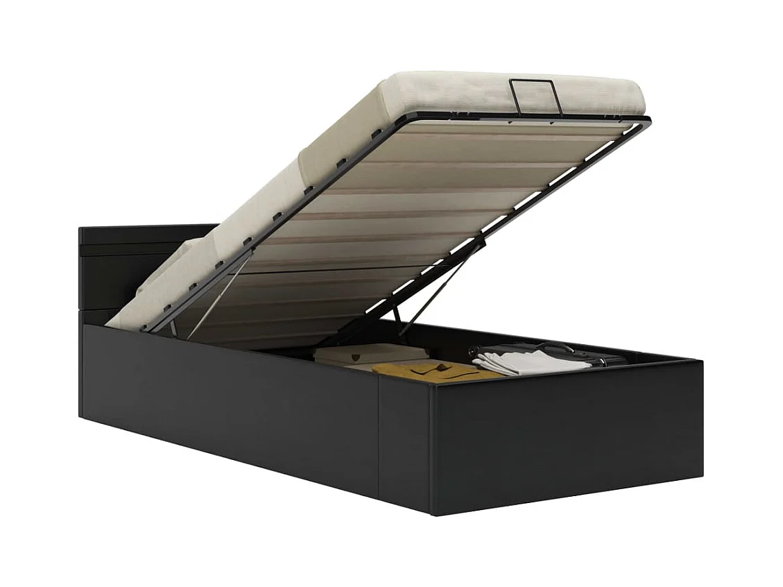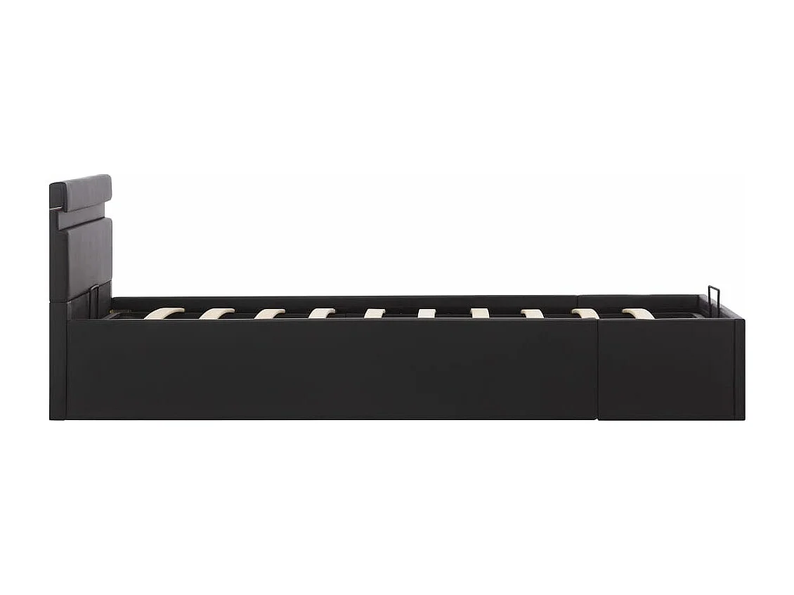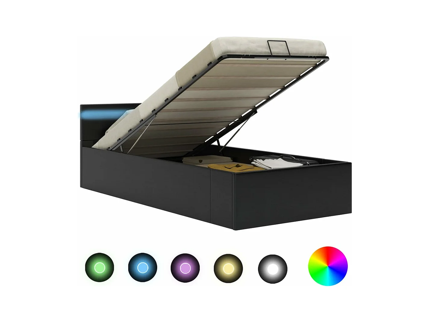 Cadre de lit à rangement avec LED noir similicuir 100x200 cm