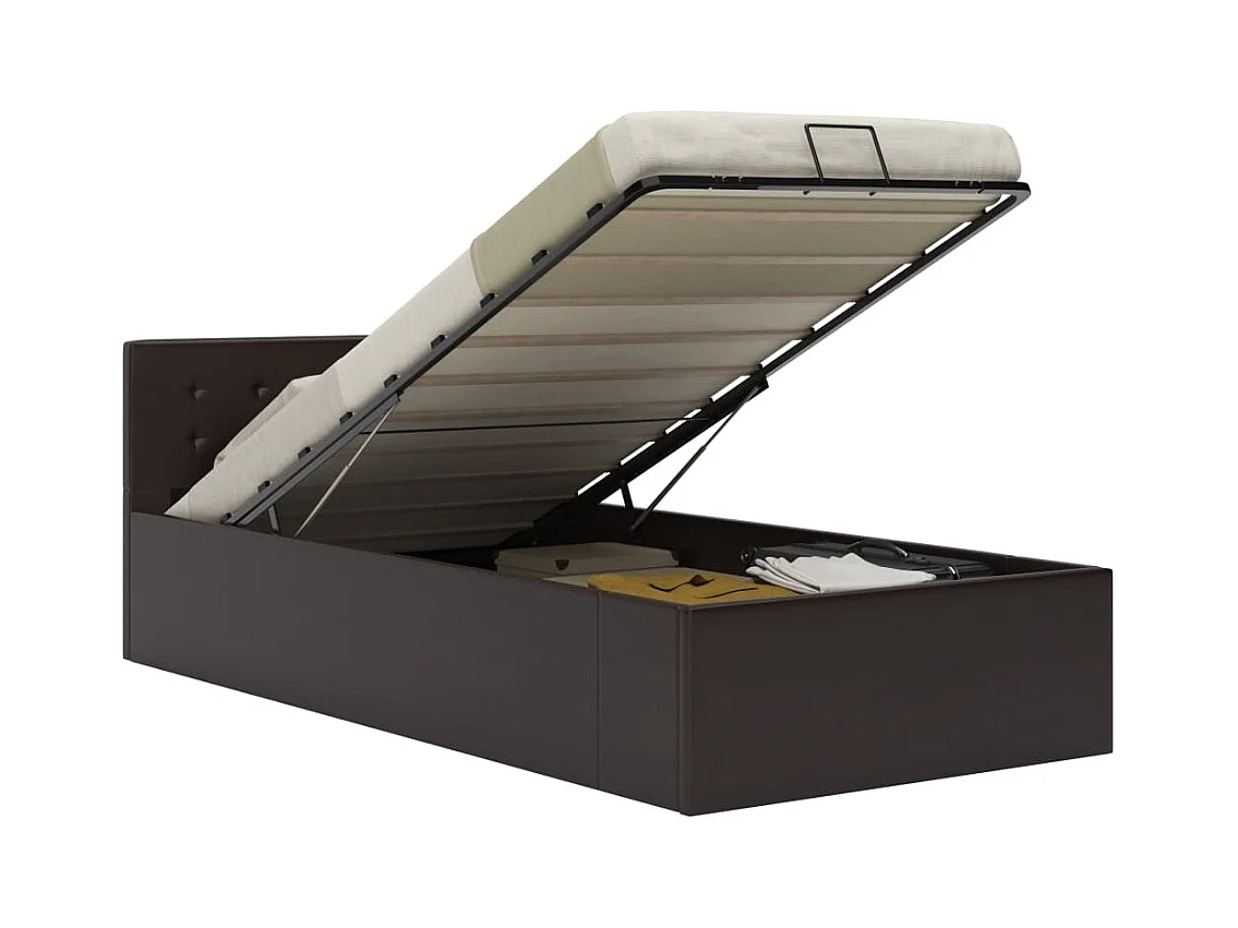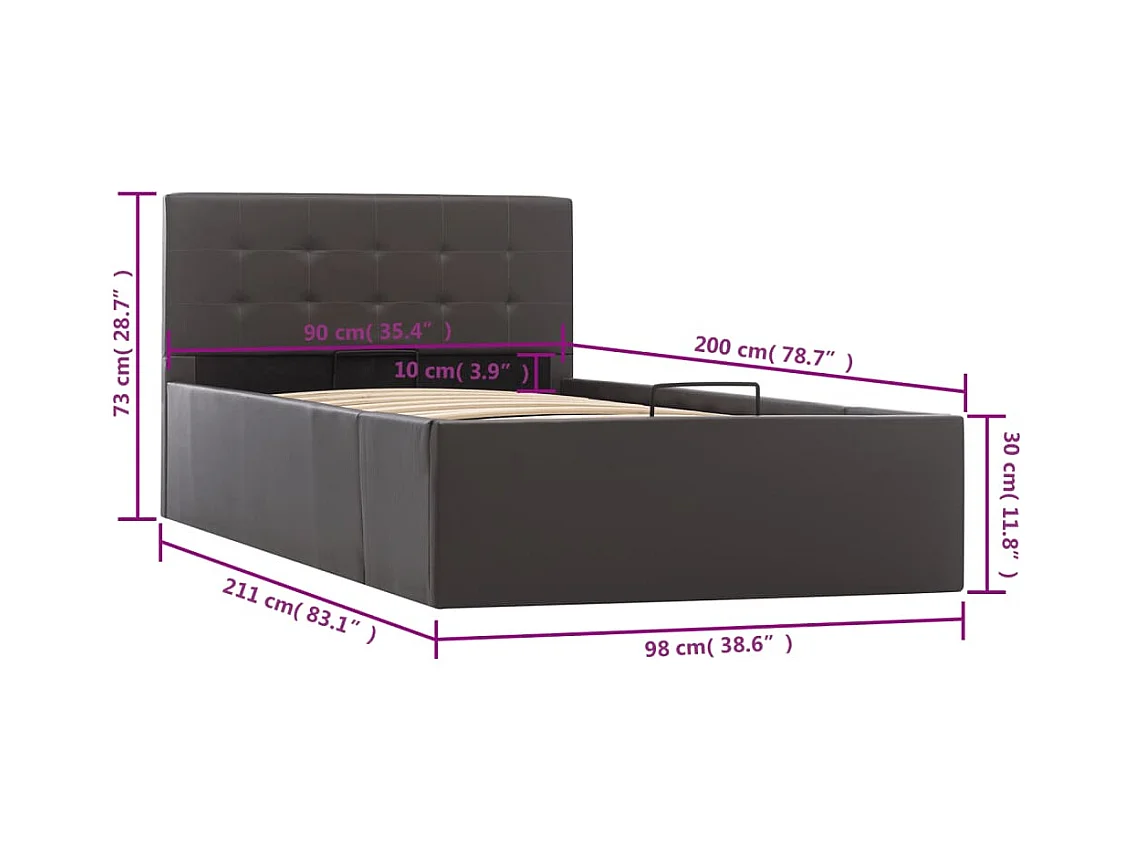 Cadre de lit à rangement hydraulique Gris Similicuir 90x200 cm