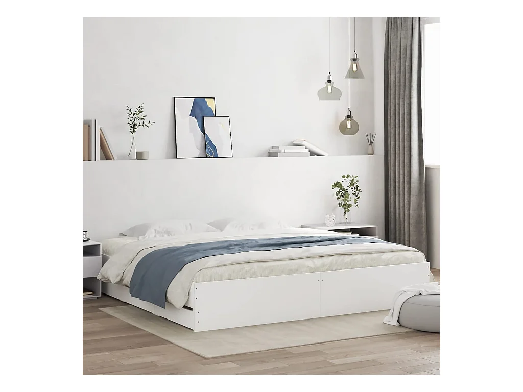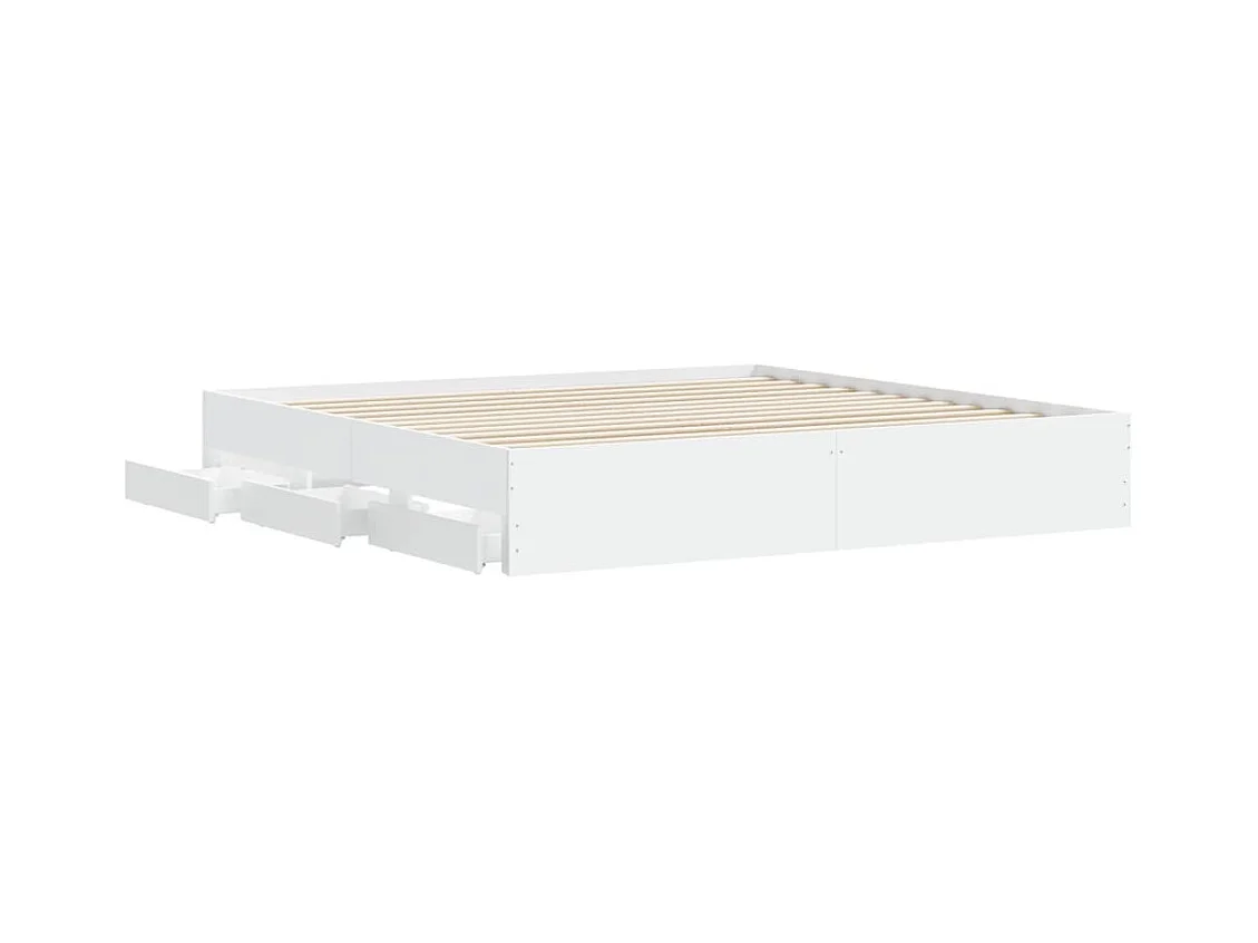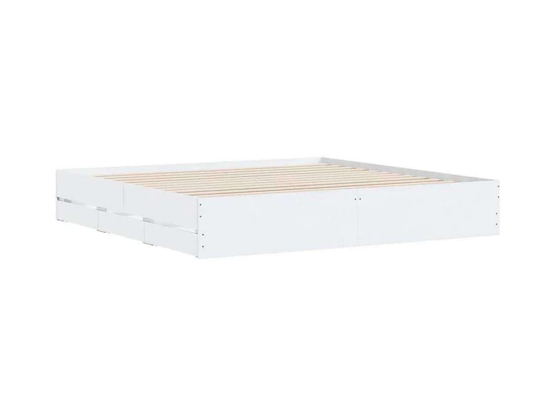 Cadre de lit à tiroirs blanc 160x200cm bois d'ingénierie