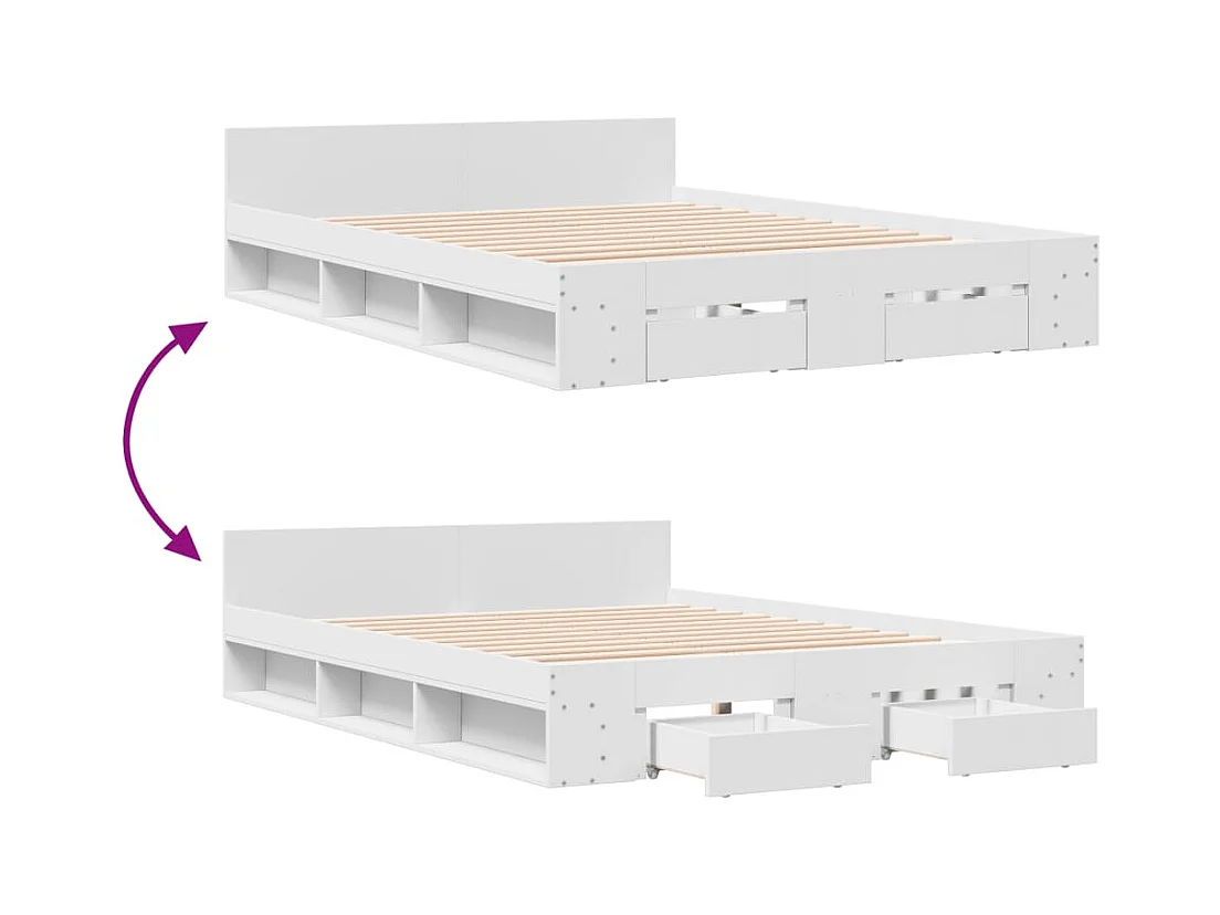 Cadre de lit avec tiroirs sans matelas blanc 160x200 cm