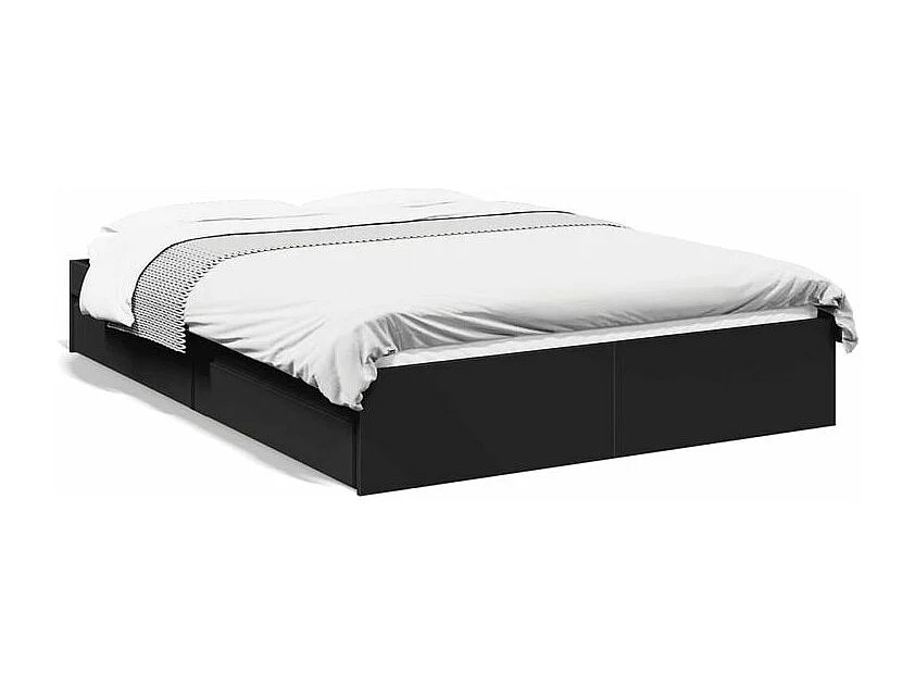 Cadre de lit à tiroirs noir 140x190 bois d'ingénierie