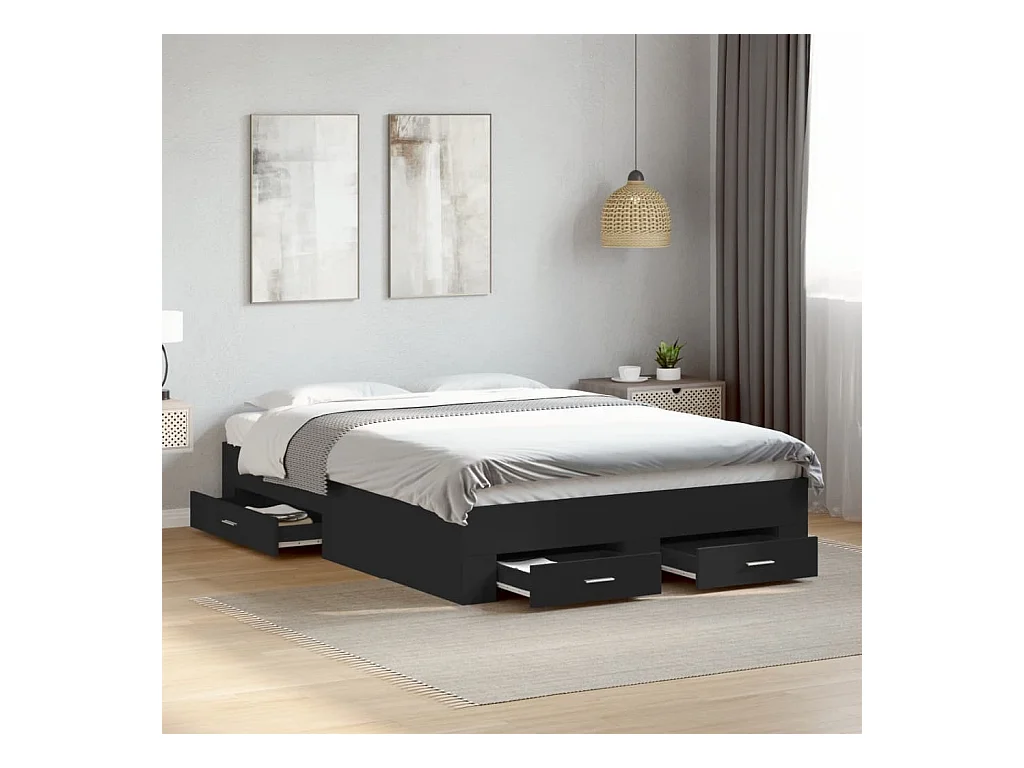 Cadre de lit à tiroirs noir 140x190 cm bois d'ingénierie