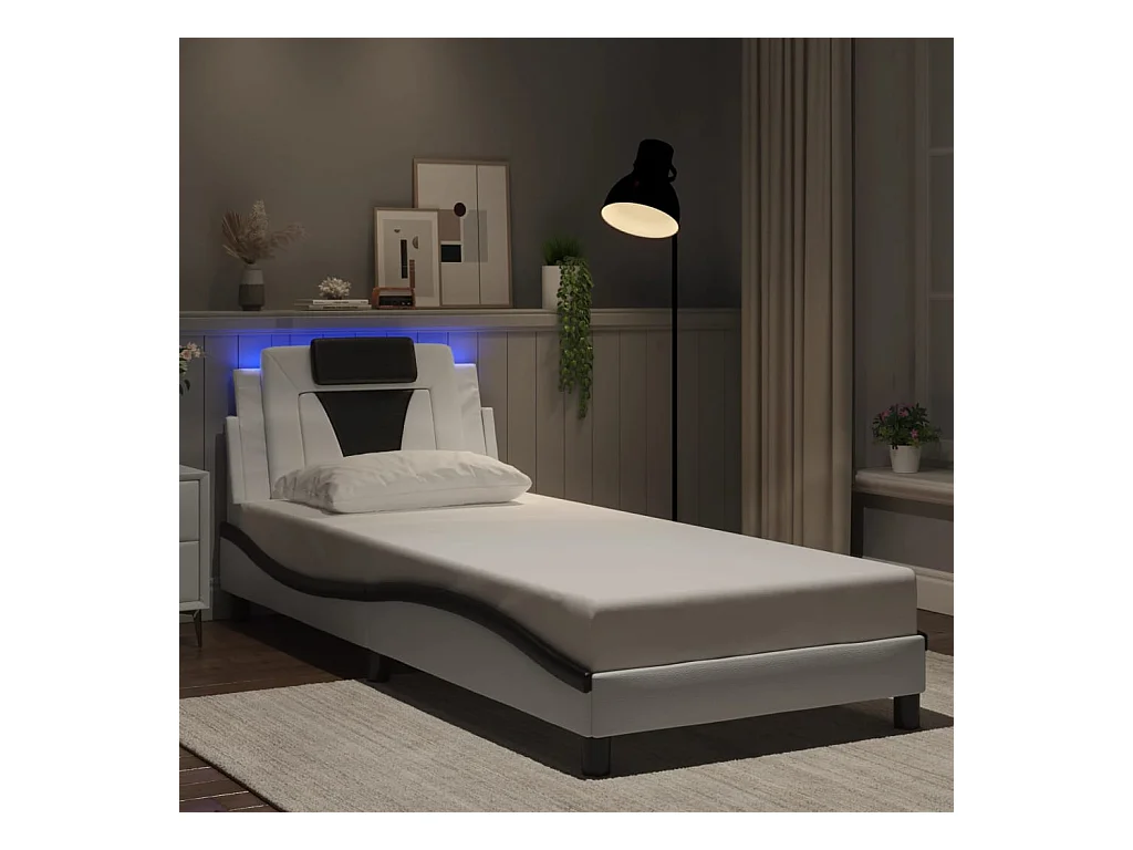 Cadre de lit avec LED sans matelas blanc et noir 90x190 cm