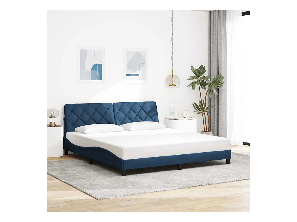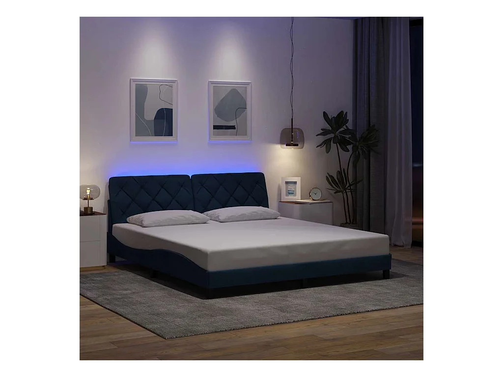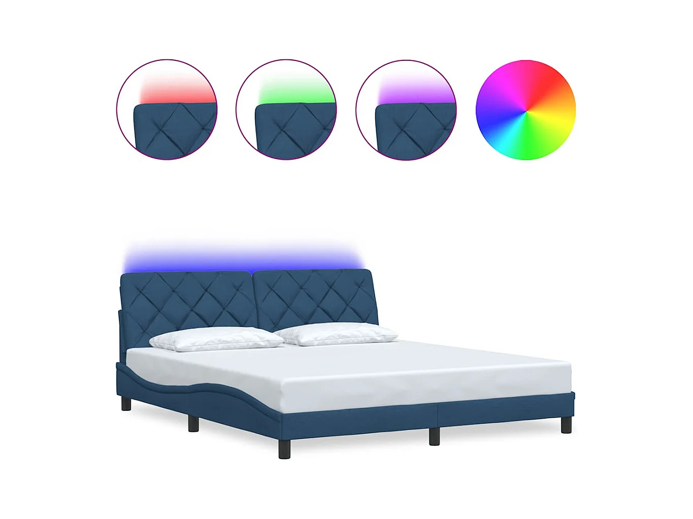 Cadre de lit avec LED sans matelas bleu 180x200 cm tissu