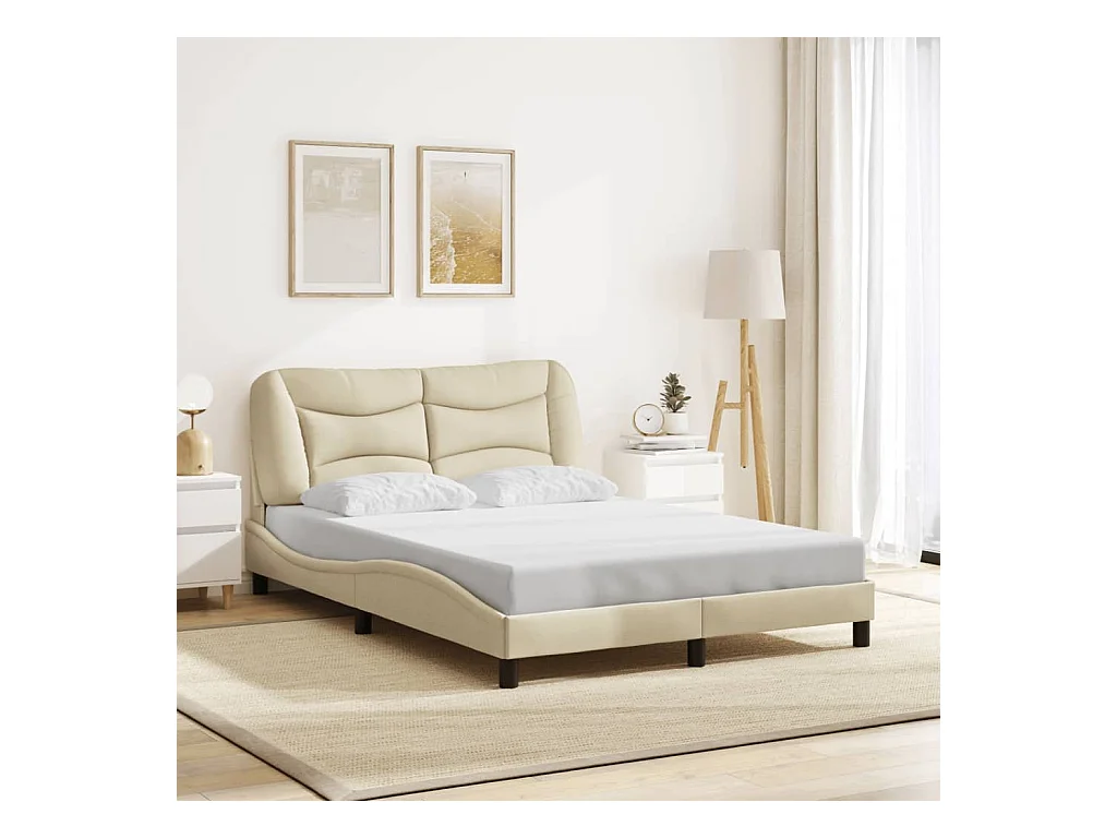 Cadre de lit avec LED sans matelas Hvar crème 140x190 cm tissu