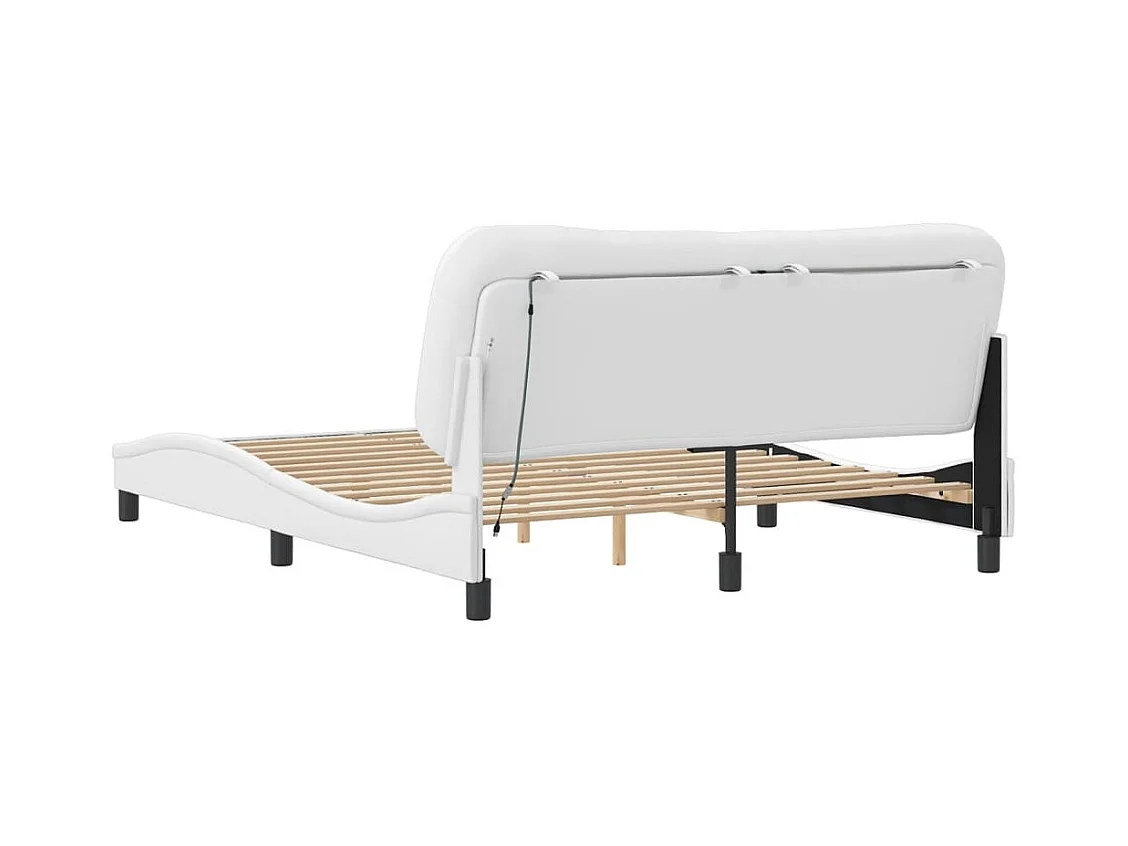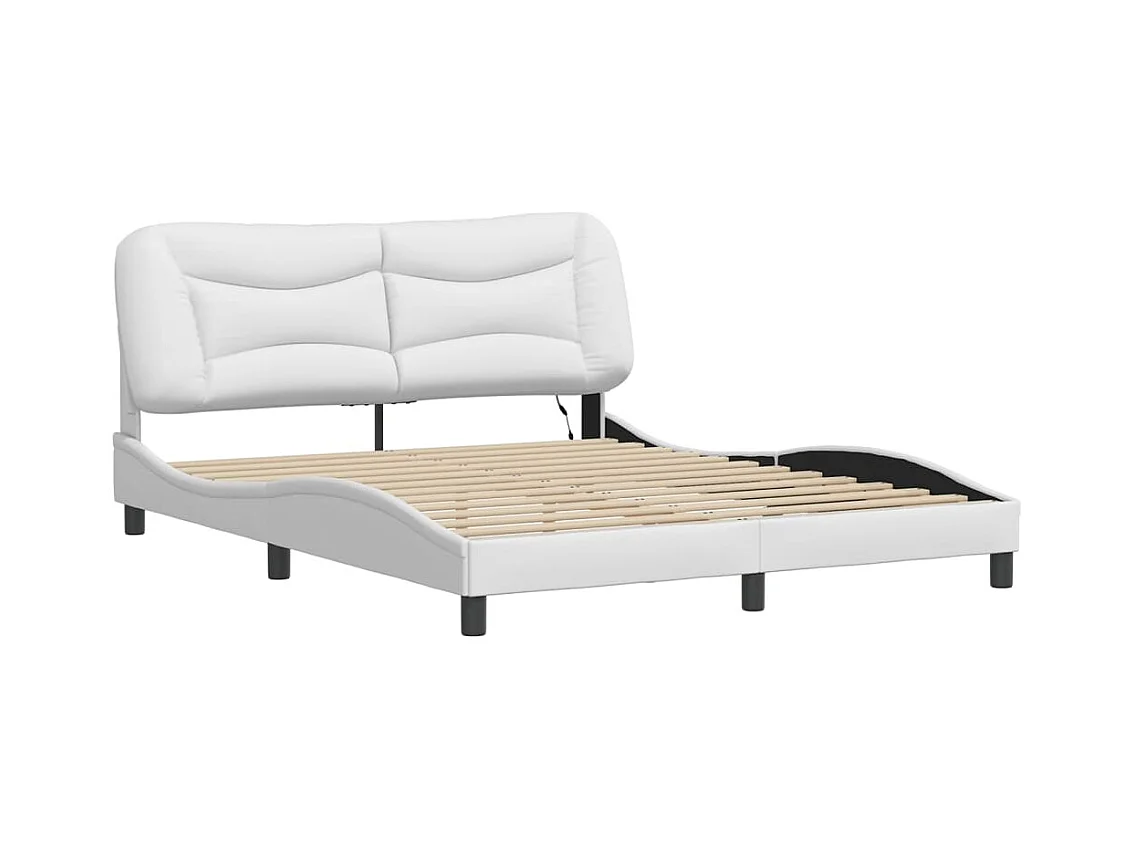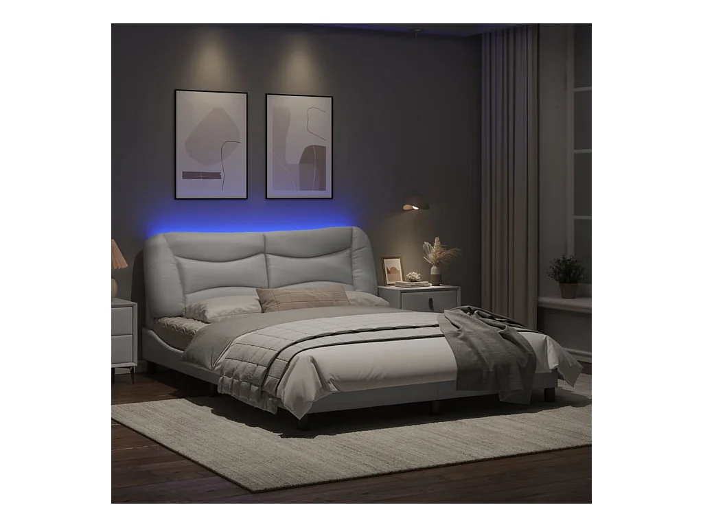 Cadre de lit avec lumières LED blanc 160x200 similicuir