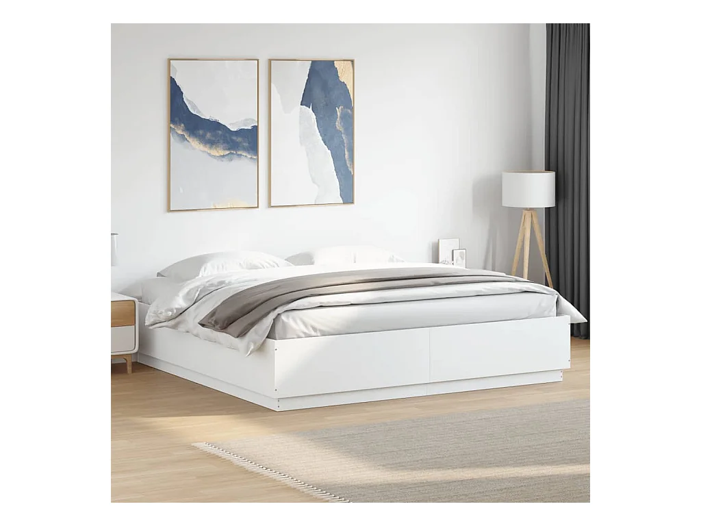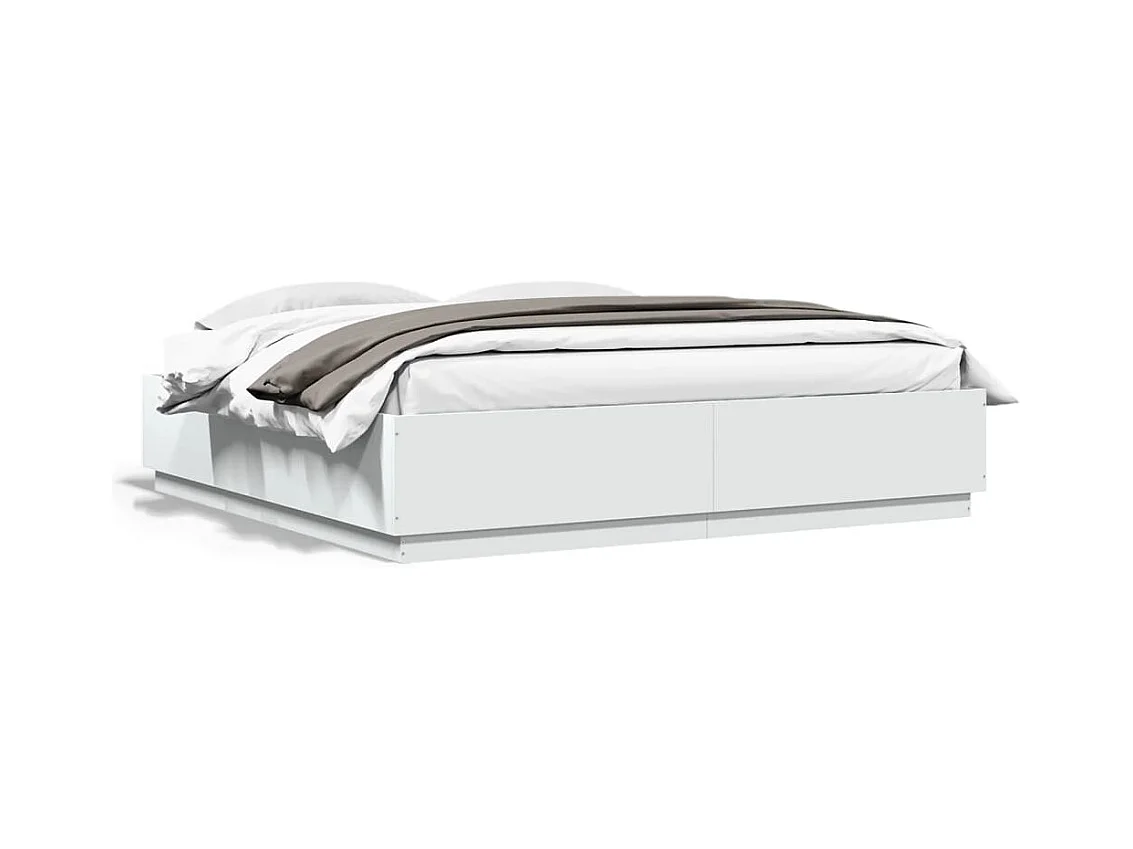 Cadre de lit avec lumières LED blanc 200x200 bois ingénierie