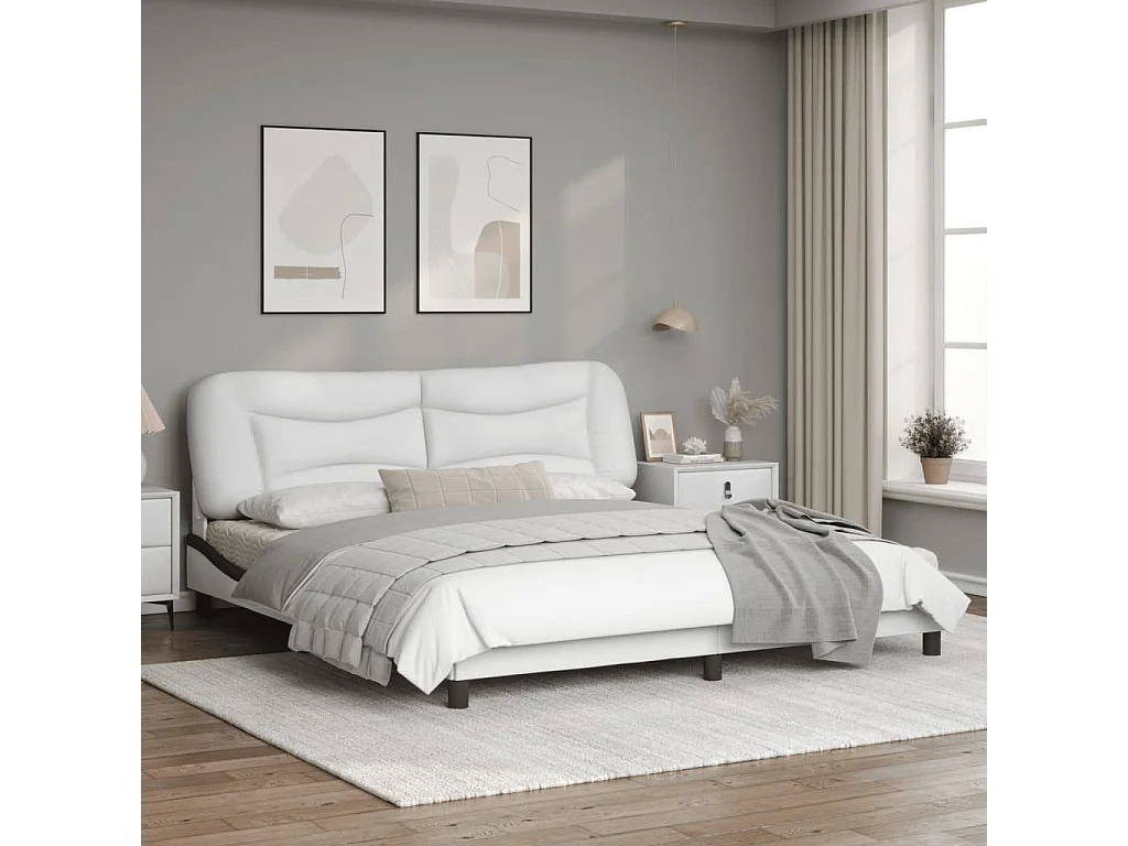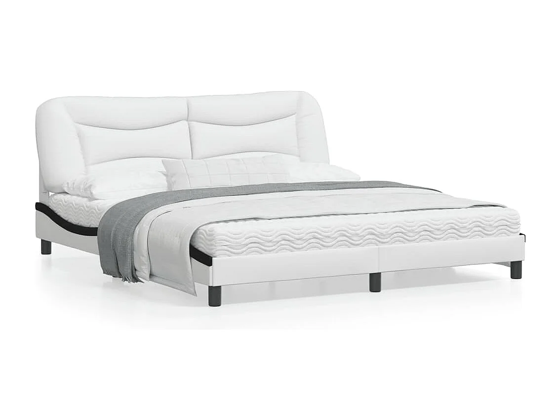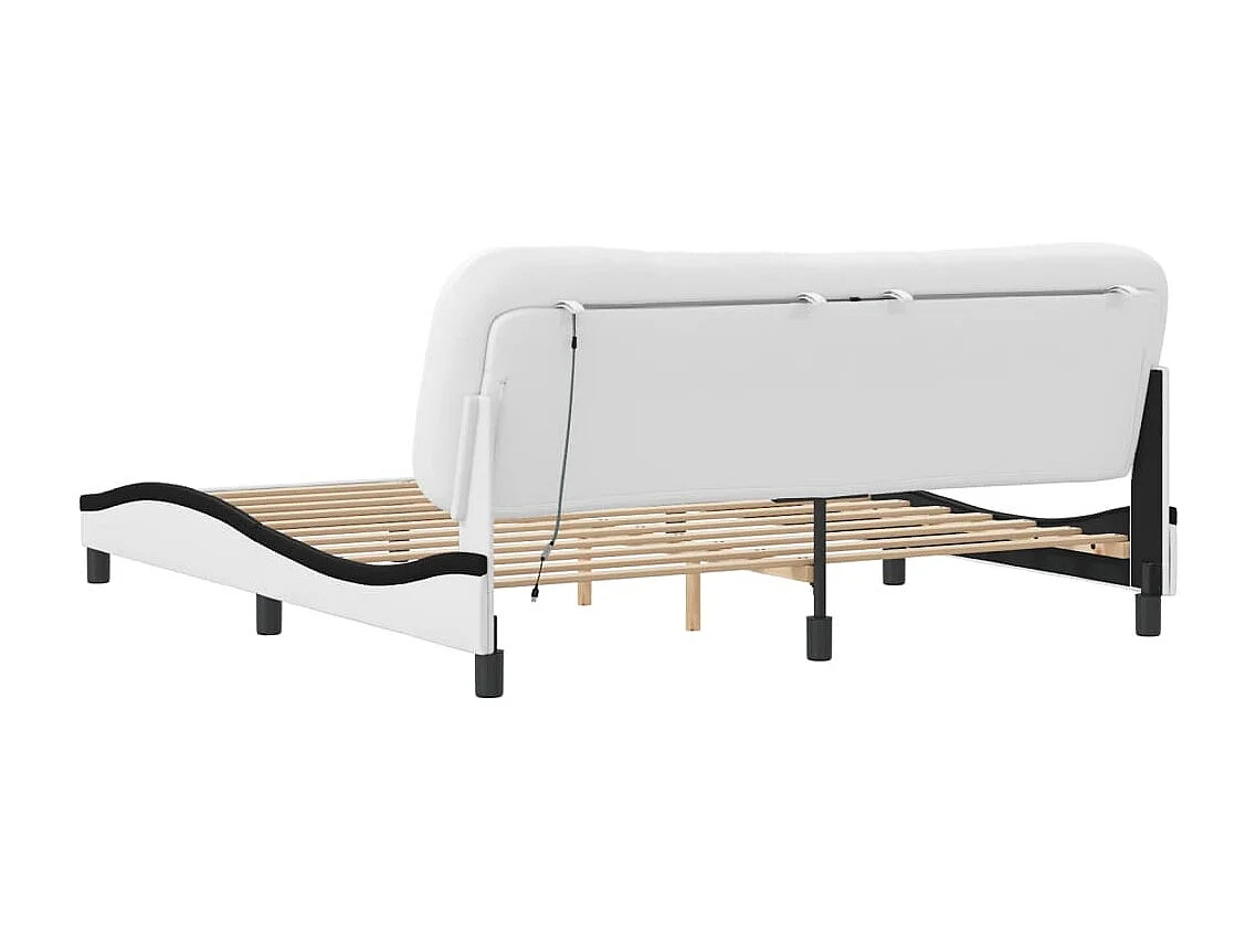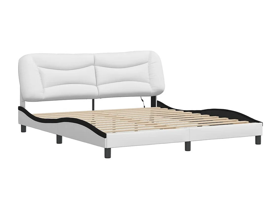 Cadre de lit avec lumières LED blanc noir 180x200 similicuir