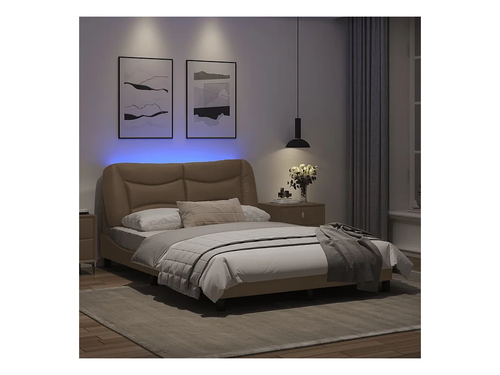 Cadre de lit avec lumières LED cappuccino 140x190 similicuir
