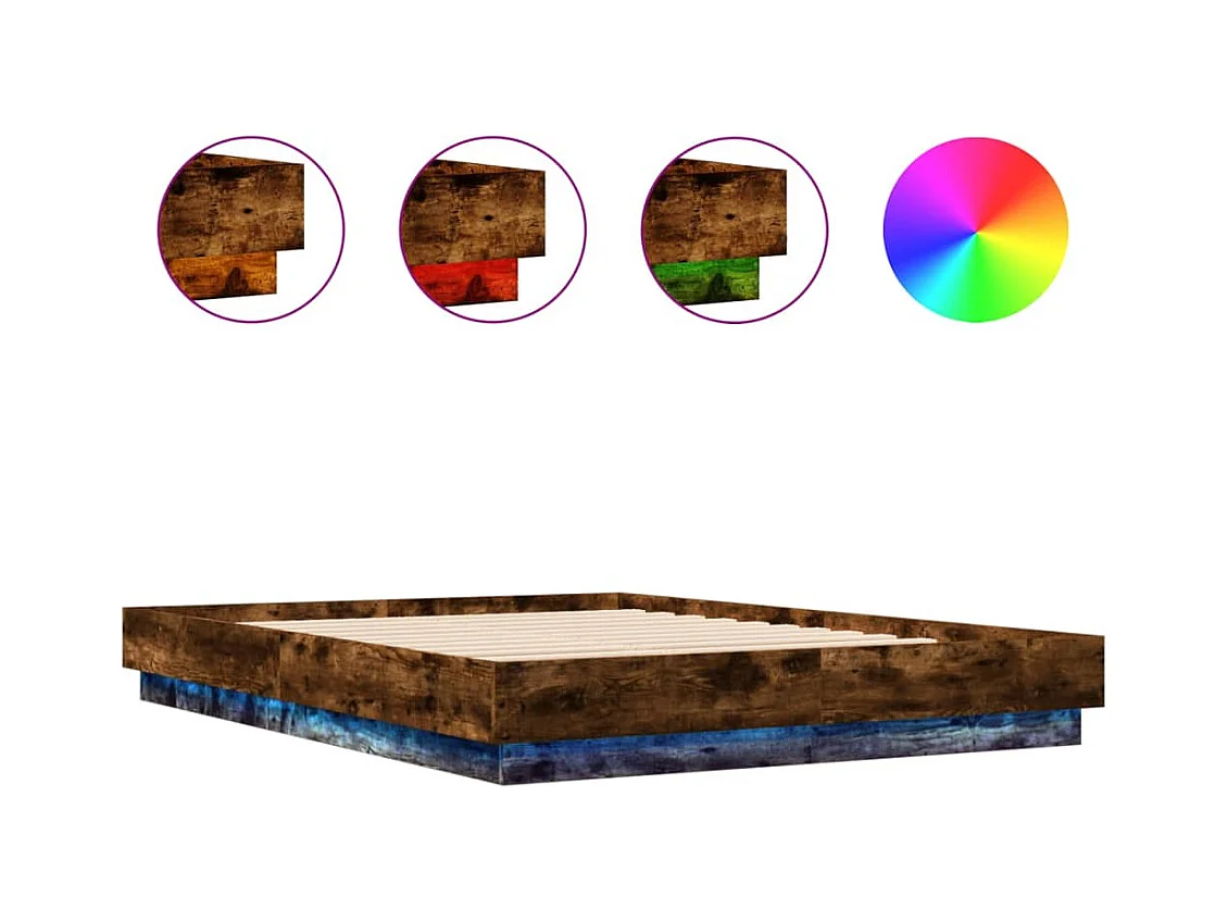 Cadre de lit avec lumières LED chêne fumé 120x200