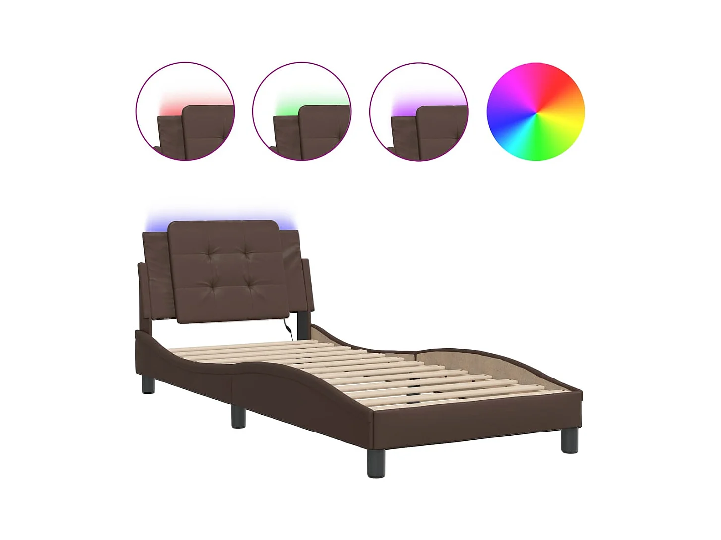 Cadre de lit avec lumières LED marron 100x200 similicuir