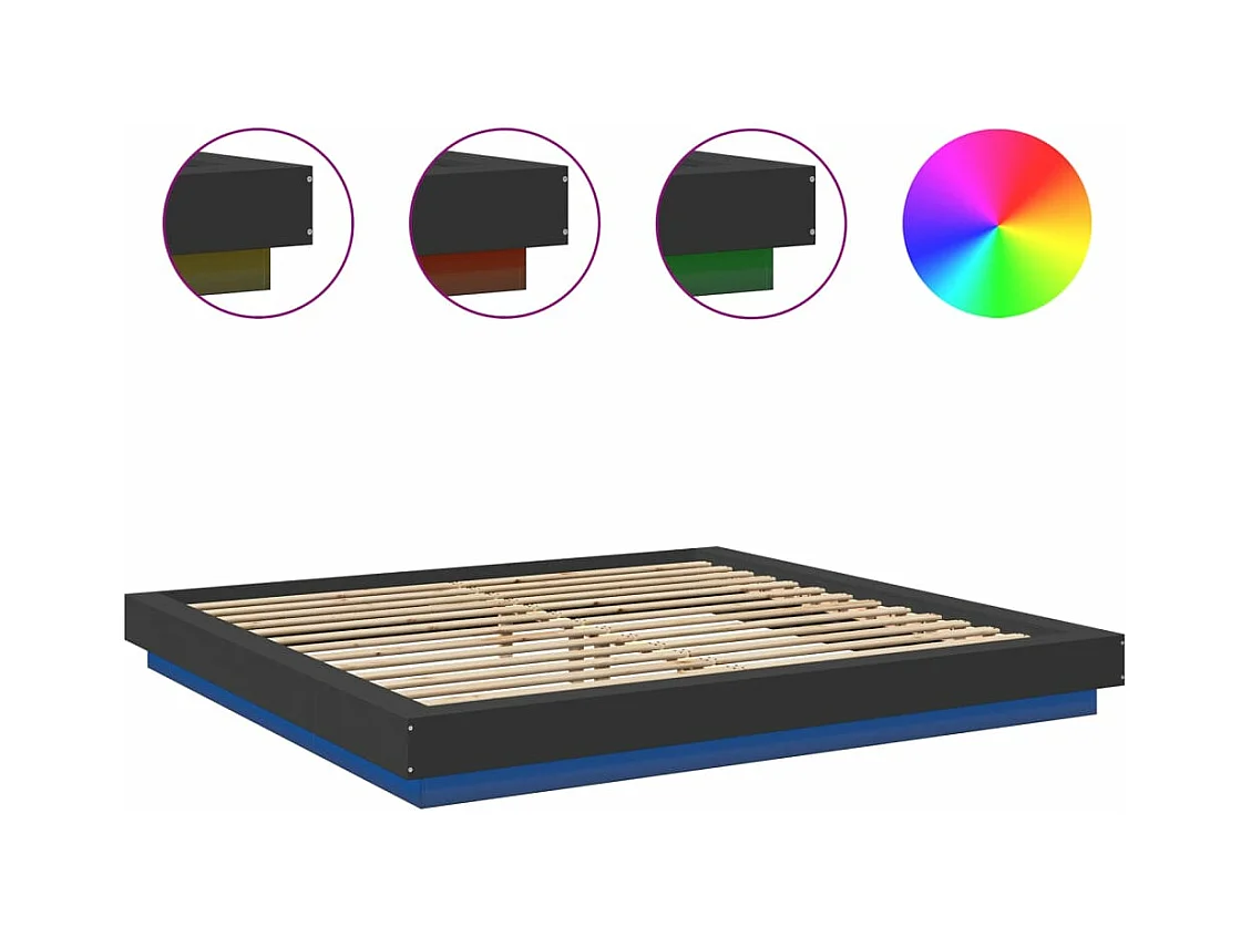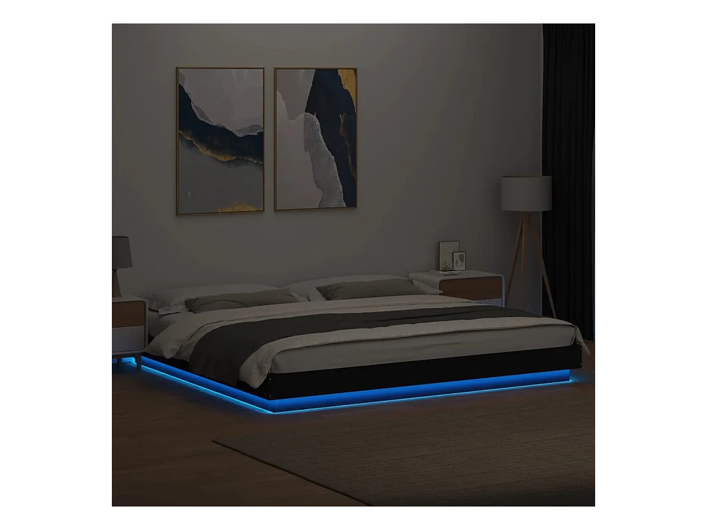 Cadre de lit avec lumières LED noir 200x200 bois d'ingénierie