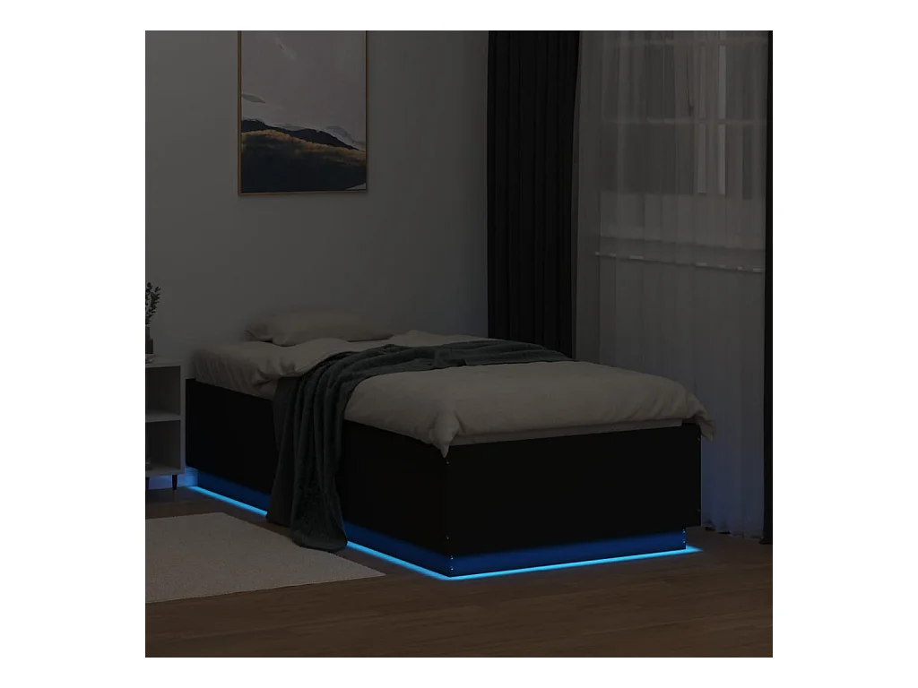 Cadre de lit avec lumières LED noir 90x190 cm bois d’ingénierie