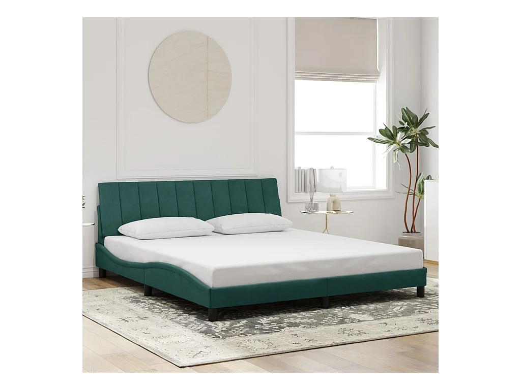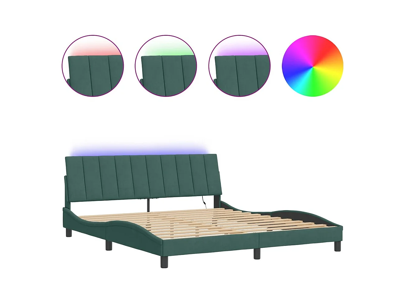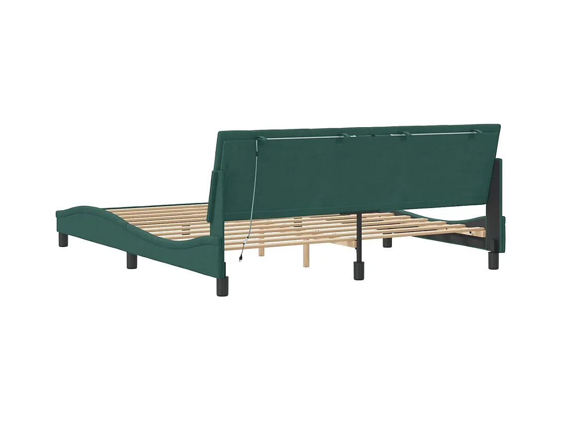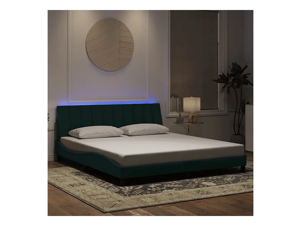 Cadre de lit avec LED sans matelas Hanko vert foncé 180x200 cm velours