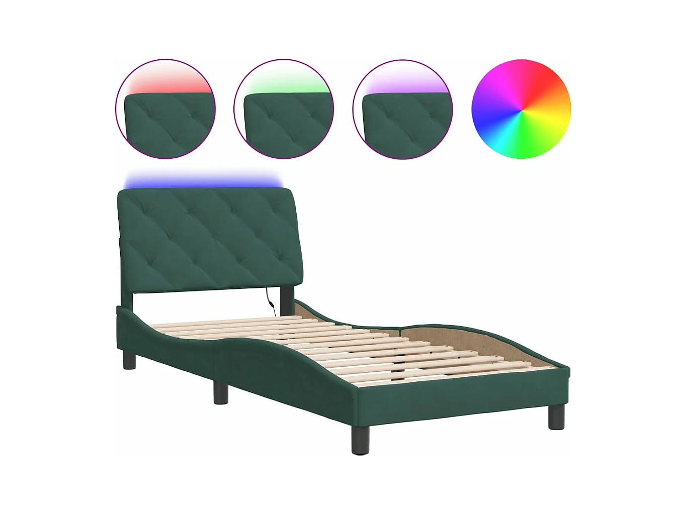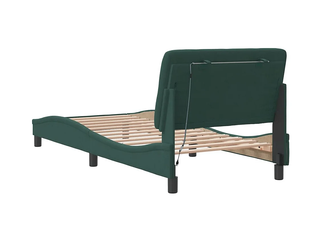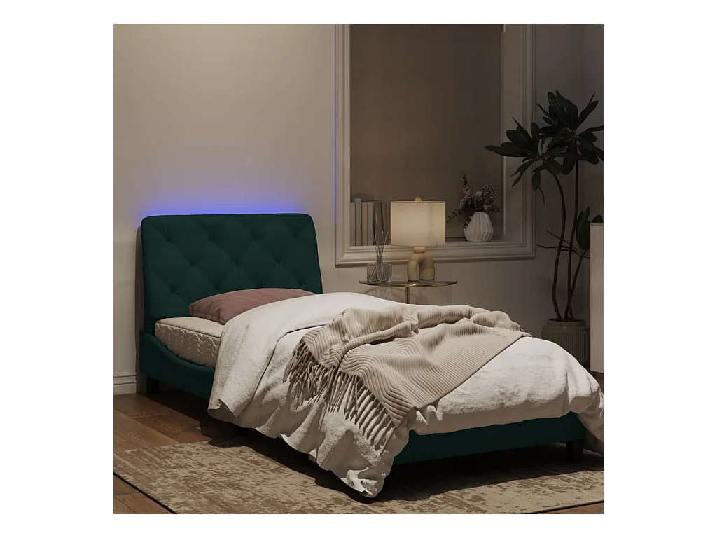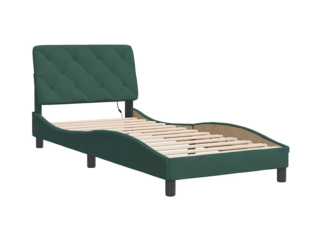 Cadre de lit avec lumières LED vert foncé 90x190 velours